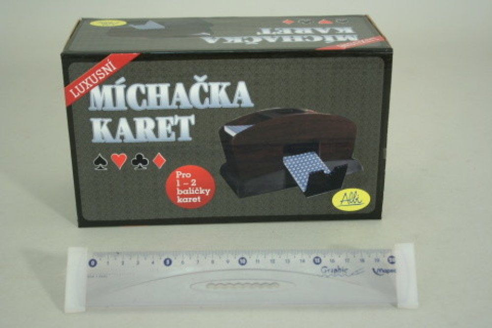 Stačí karty vložit z obou stran do míchačky a ona sama zamíchá karty. Ty pak stačí vyjmout ze spodní zásuvky. Už se nikdo nebude moc vymlouvat na zfalšované míchání nebo naopak švindlovat při míchání.