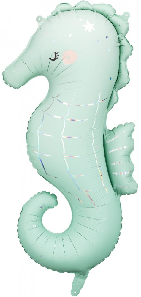 Fóliový balónek ve tvaru mořského koníka je poutavý doplněk pro tematickou oslavu v motivu podmořského světa, mořské víly nebo Mermaid párty. Tento balónek je laděný do světle zelené barvy a zdobí ho holografické detaily. Pro další párty produkty v motivu podmořského světa a mořské panny můžete prozkoumat naši kategorii Podmořský svět. Velikost/rozměr: 110 × 63 cm (rozměry po nafouknutí 98 × 47 cm...