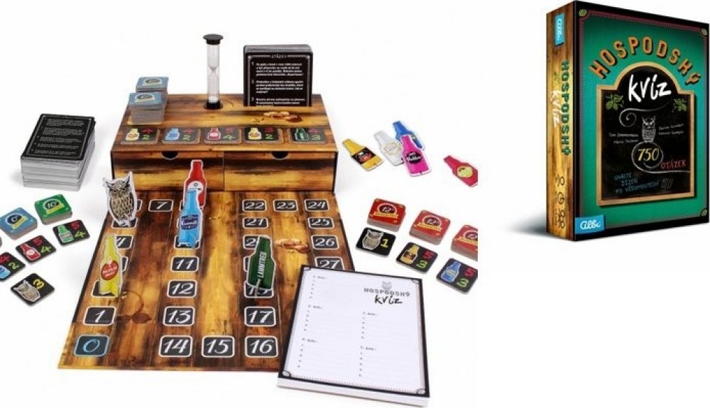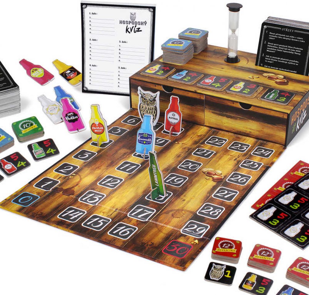 Hra Hospodský kvíz se hodí i domů či na párty. A díky jejímu praktickému balení si ji můžete vzít i na cesty či ven. Její herní plán je totiž součástí krabice a komponenty se dají uklidit do zásuvek.