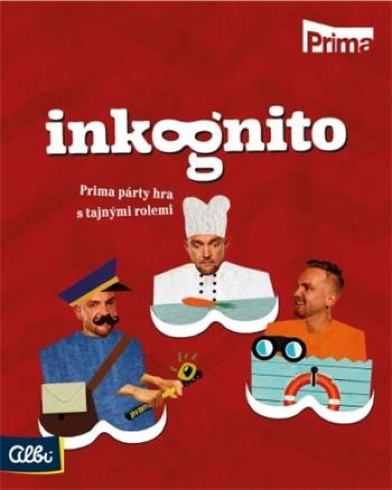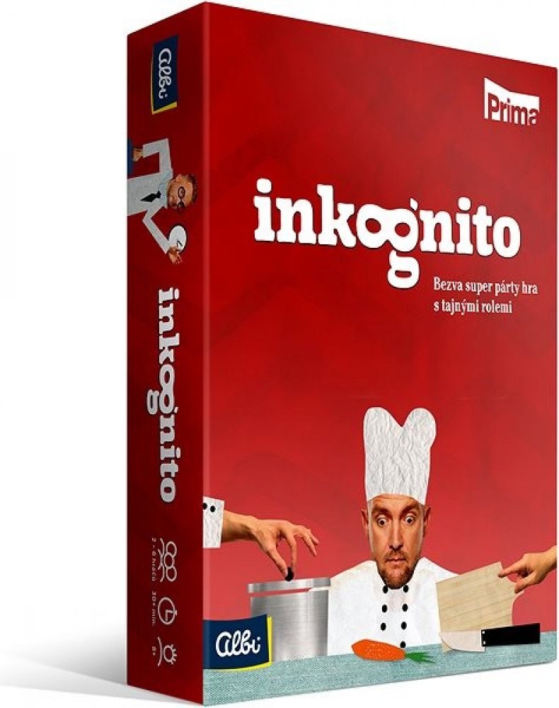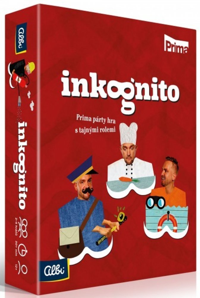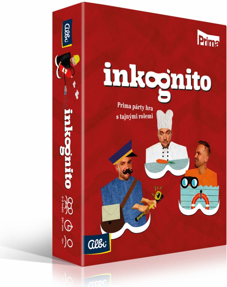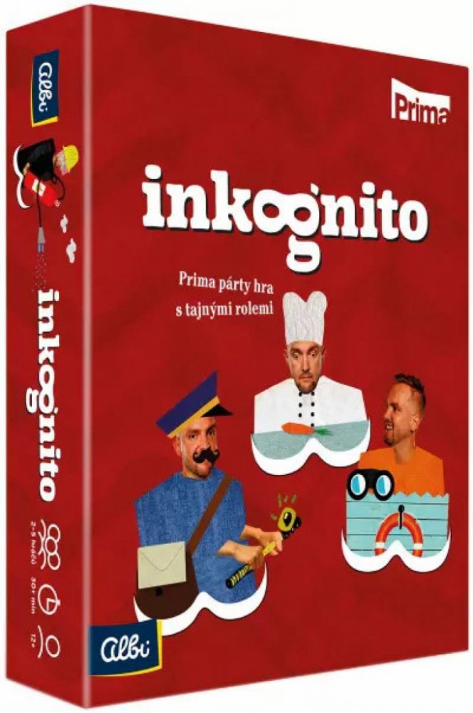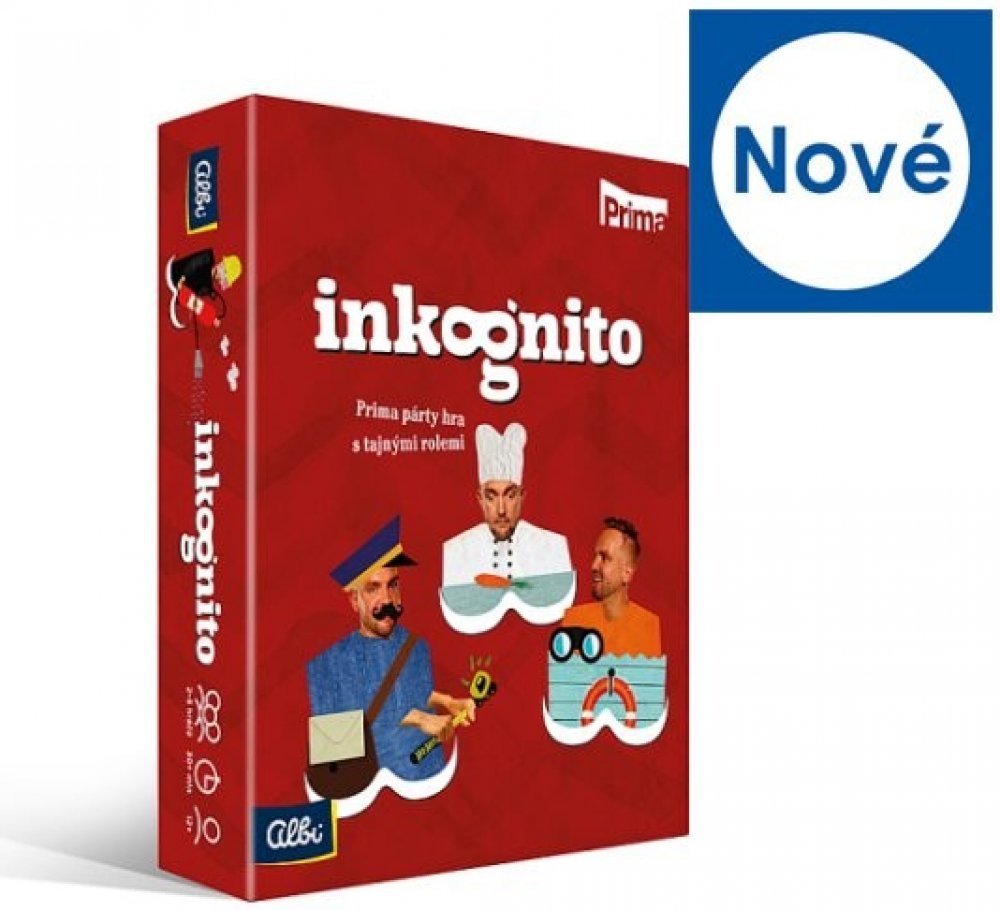 Hra Inkognito obsahuje: karty postav, karty povolání, malé žetony ve tvaru nářadí, 4 škrabošky. Doba hraní: 30 min. Počet hráčů: 2-5. Věk: 12+