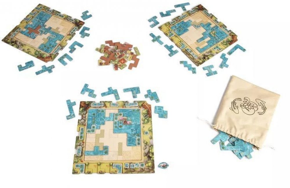 Obsah balení: 64 dílků vody, 18 dílků dekorací, 60 bonusových dílků (15 pro každého hráče), 4 desky hráče, 4 karty jezera, plátěný pytlík, česká a slovenská pravidla