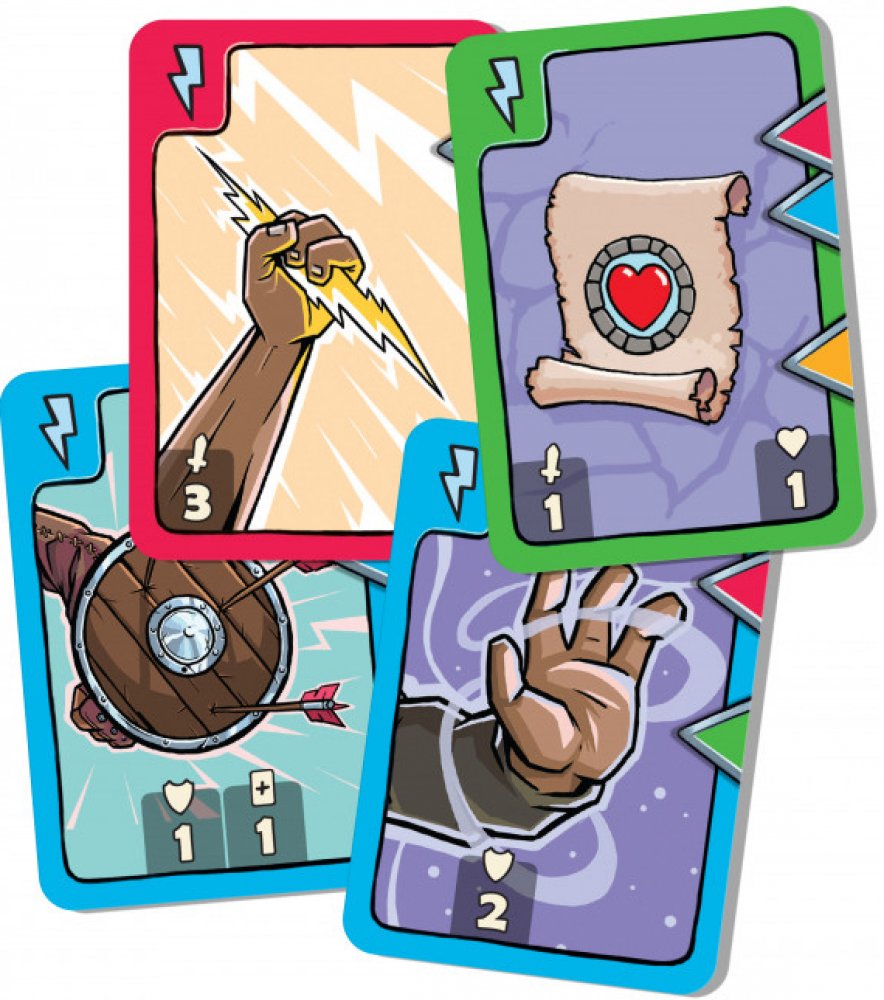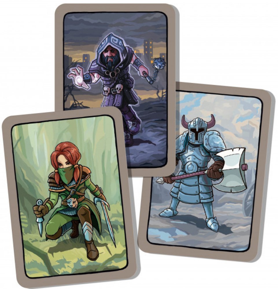 Obsah balení: 6 karet hrdinů, 20 karet životů, 82 karet překážek, 36 základních akčních karet hrdinů, 6 karet podzemí, 13 karet Obchodníka (protikleteb, kouzel a léčení), pravidla