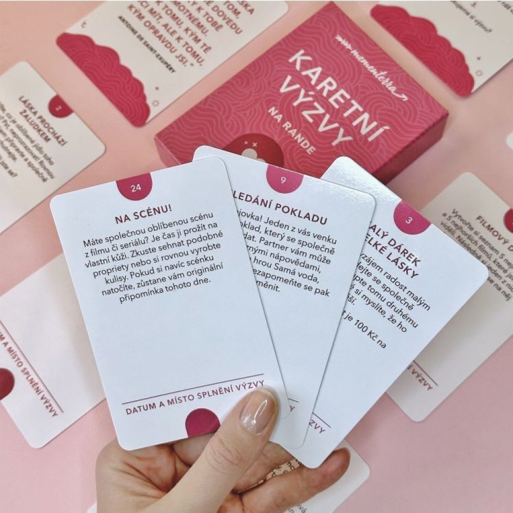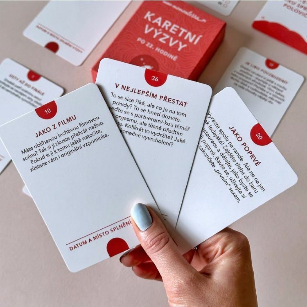 Karetní výzvy - Po 22. hodině z edice Mementerra je erotická hra i způsob, jak oživit vášeň ve vztahu. Ponořte se do hlubin vášně a okořeňte si společné chvilky něčím originálním. Něžná i drsnější, fyzická i mentální – erotické výzvy vás zavedou do světa rozkoše, na kterou jen tak nezapomenete. Objevujte vzájemně nejen svá těla, ale také fantazie a sny.