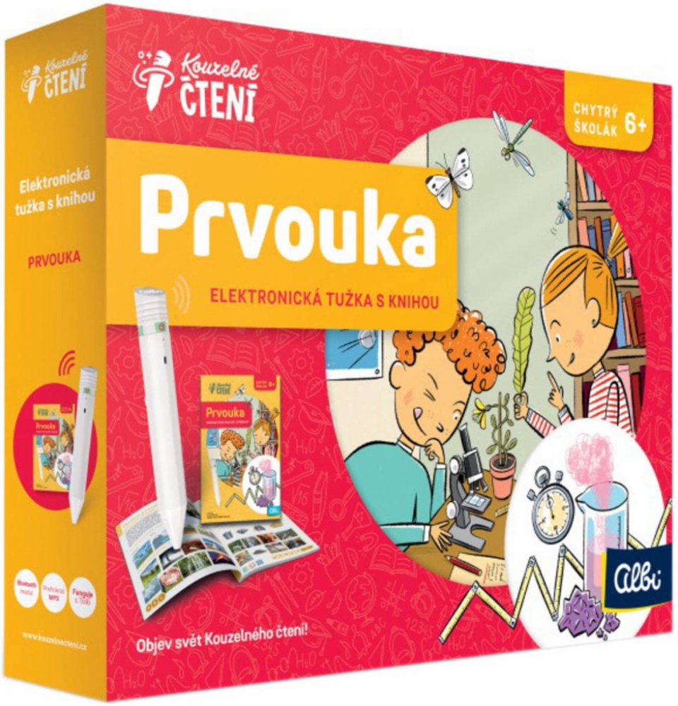Interaktivní mluvicí učebnice Prvouka s elektronickou Albi tužkou 2.0 z edice Kouzelné čtení představí dětem od 6 let zábavnou a interaktivní formou to nejdůležitější, co by měl žák 1. stupně znát z předmětu Prvouka. Obsahuje 17 kapitol, které jsou zaměřeny na to nejdůležitější ze vzdělávací oblasti Člověk a jeho svět - např. Lidské tělo, Moje vlast, Vesmír, Louka, Roční období, Ochrana přírody a jiné.