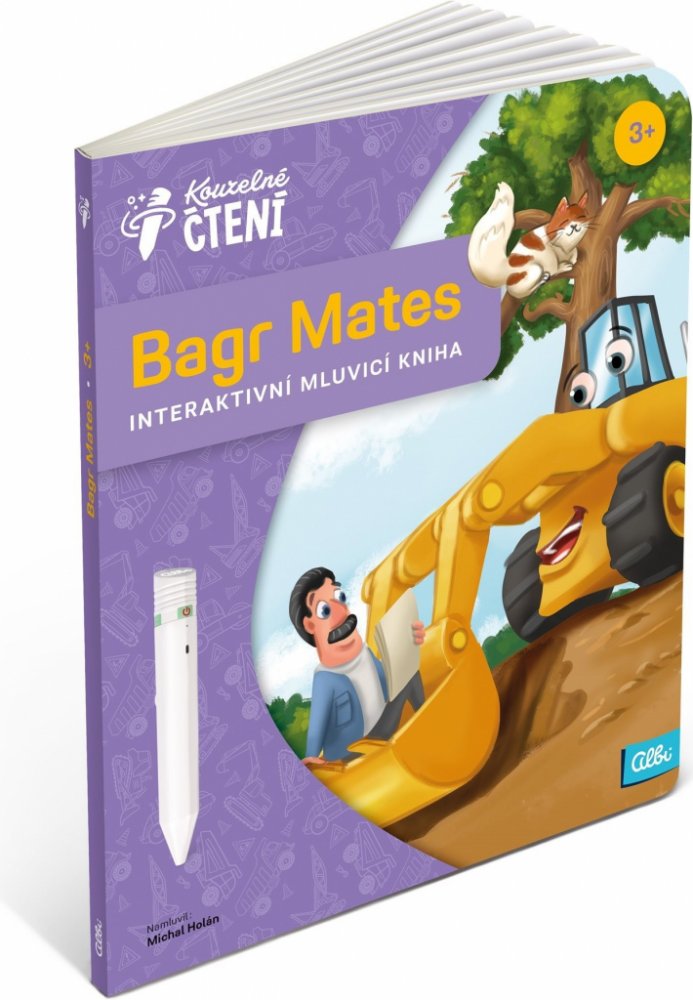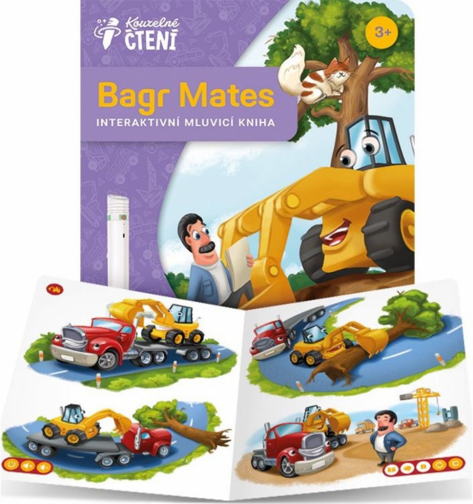 Interaktivní mluvicí dětská kniha Bagr Mates z edice Kouzelné čtení seznámí děti od 3 let s dobrodružstvím roztomilého bagru na stavbě. Myslíte si, že se na stavbě nemůže stát nic, co by stálo za řeč? Tak to jste ještě neslyšeli o stavbě, kde je stavbyvedoucím pan Makovička. Právě přijel nový bagr, kterého náklaďák Rudolf pojmenoval Mates. Už cestou na stavbu se Mates osvědčil při odklízení stromu, a to ještě netušil, jakým se stane hrdinou. Matesovi se totiž podaří vykopat poklad nebo odhalit strašidlo, kterého se bojí jeho kamarádi. A nejen to! Pojďte zjistit, co všechno bagr Mates na stavbě zažil. Kniha Bagr Mates obsahuje přes 500 zvukových stop.