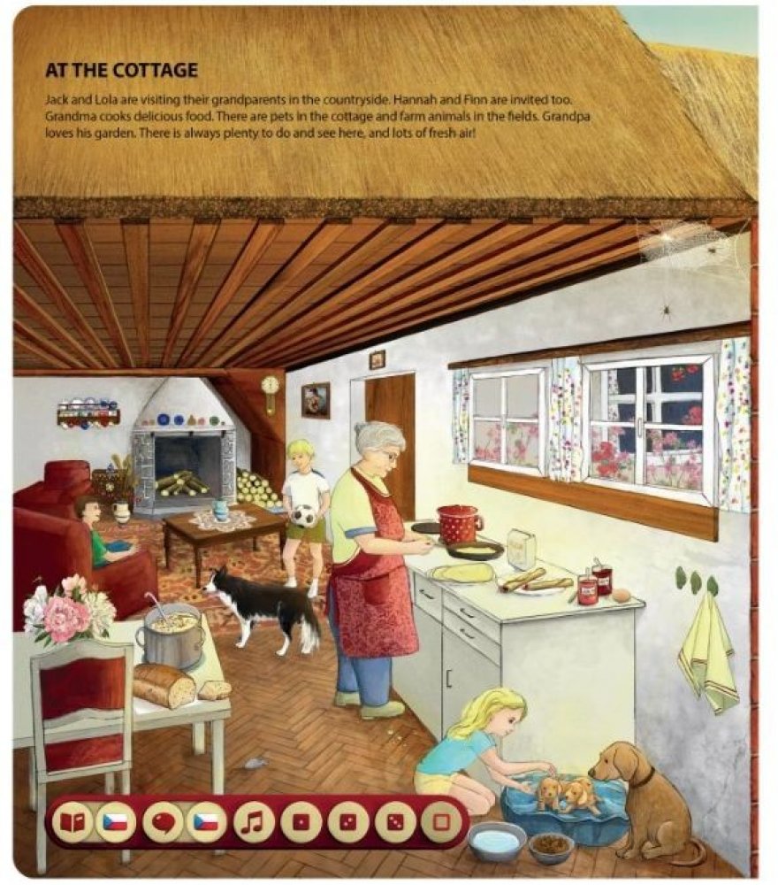 Zábavnou formou si vytvoříte nebo rozšíříte slovní zásobu a naučíte se správně vyslovovat anglická slovíčka a jednoduché věty. Kniha je namluvena rodilými mluvčími, ale obsahuje také kompletní český překlad. Získané znalosti si můžete otestovat v kvízech, které jsou rozděleny do tří kategorií dle obtížnosti. Kniha obsahuje přes 2200 zvuků a textů.