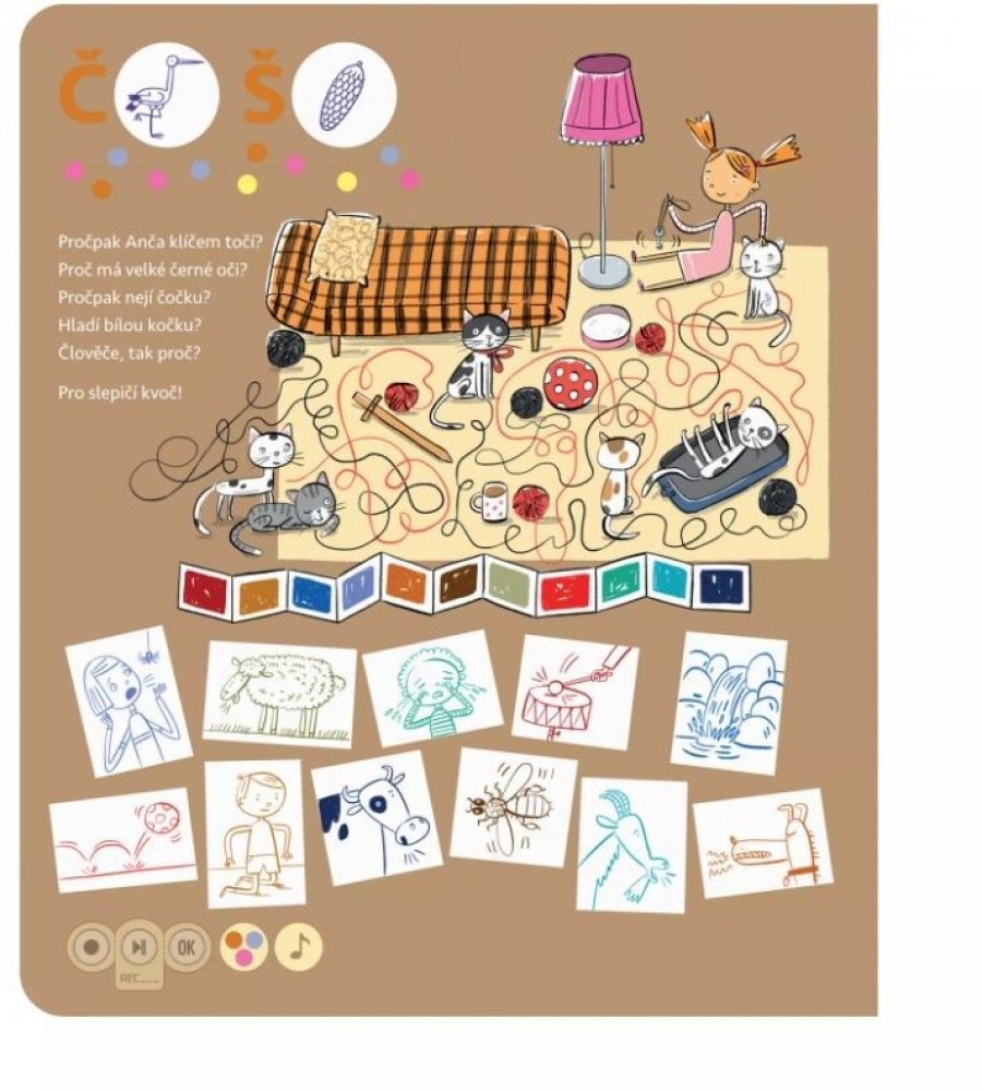 V interaktivní mluvící knize si děti od 3 let procvičí hlásky K, G, H, CH, Ď, Ť, Ň, Č, Š, Ž, C, S, Z a slabiky bě, pě, vě.