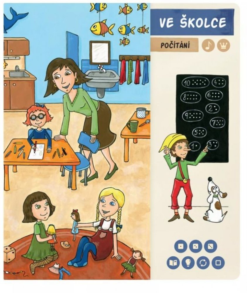 Interaktivní mluvící kniha Pohádkové učení z edice Kouzelné čtení seznámí děti předškolního věku s barvami, tvary, části těla, čísly nebo třeba protiklady. Celou knihou je doprovodí skřítek Zvídálek. Veselého skřítka zajímá úplně všechno a nebojí se zapojit ani do práce na zahrádce. Zavede děti i do divadla nebo na nákup, navštíví s nimi pana doktora i mateřskou školku.