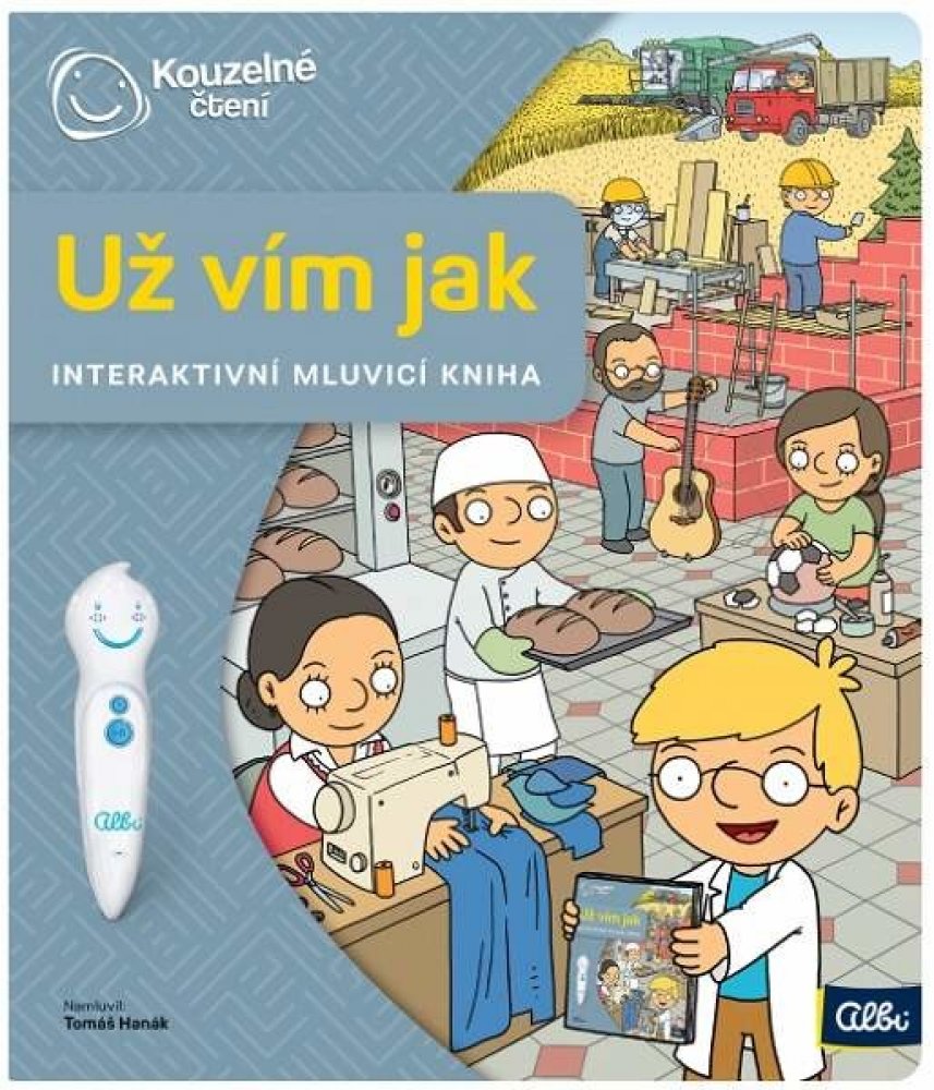UPOZORNĚNÍ: Kniha: Už vím jak funguje pouze s elektronickou tužkou ALBI (není součástí balení). Také vás vždy zajímalo, jak se vyrábí různé věci kolem nás? Jak se staví dům, jak se vyrábí jídlo, nádobí, oblečení nebo zábava? A v neposlední řadě: jak vlastně vznikla tato mluvící kniha?