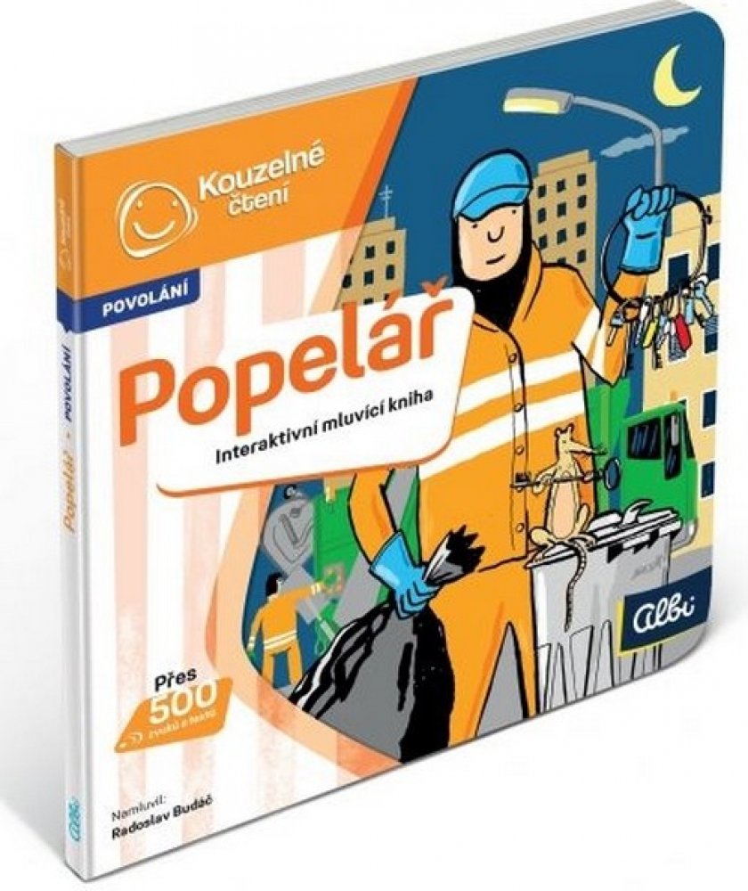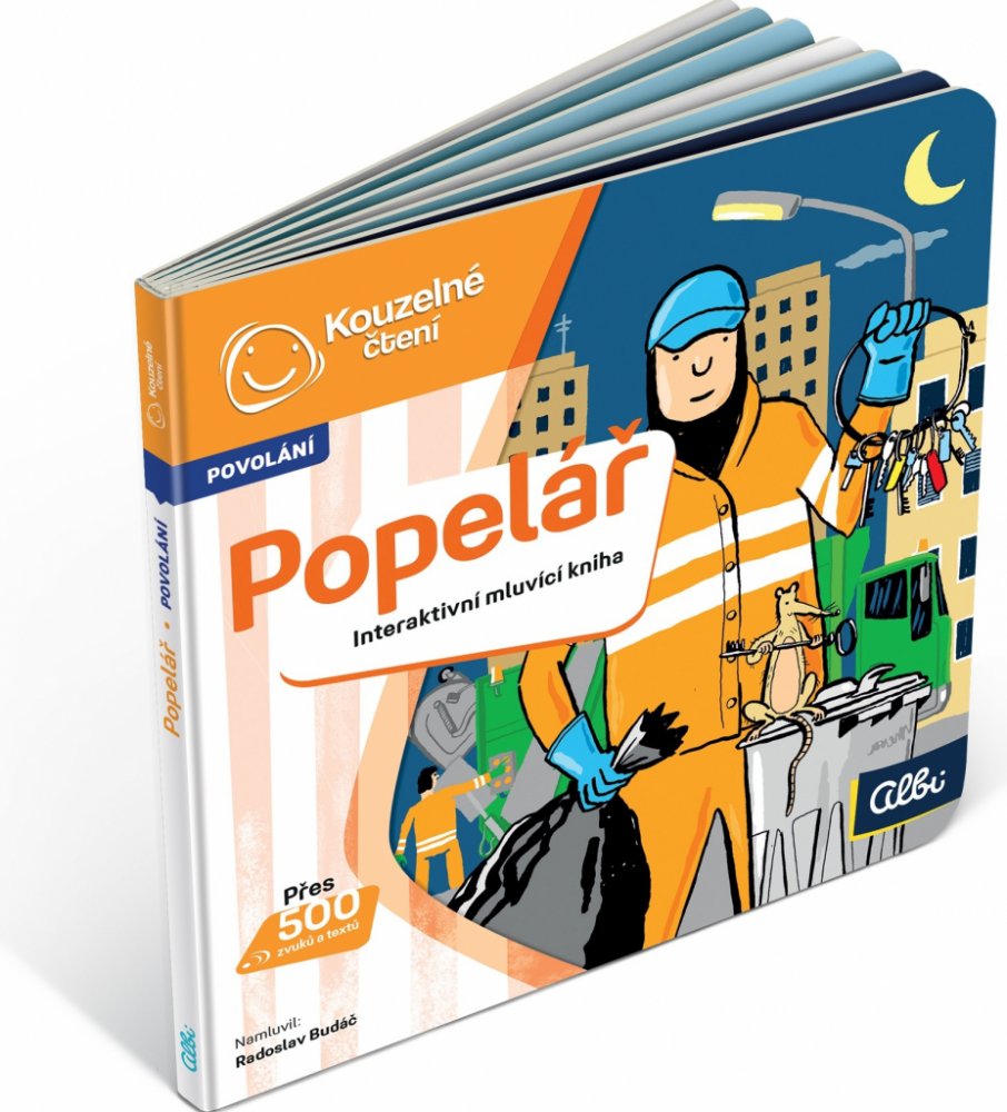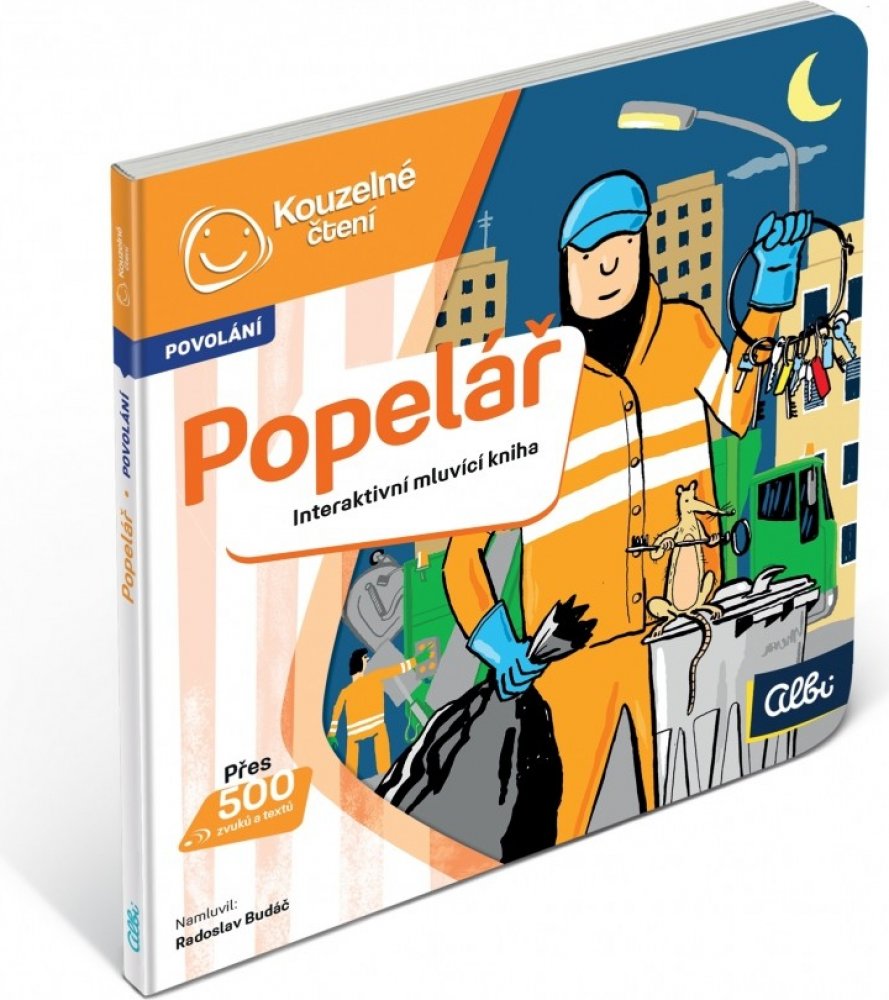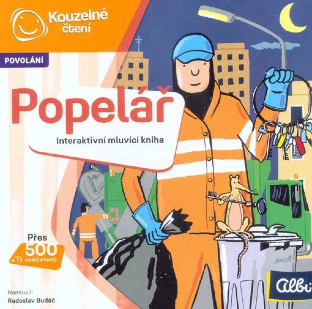 Interaktivní mluvící mini kniha Popelář seznámí děti od 5 let s povoláním popeláře. S Elektronickou Albi tužkou zjistí, jakými auty popeláři jezdí, v kolik musí ráno vstávat a co se vlastně děje s odpadky.