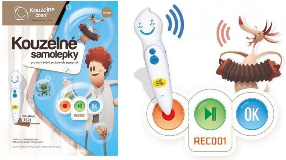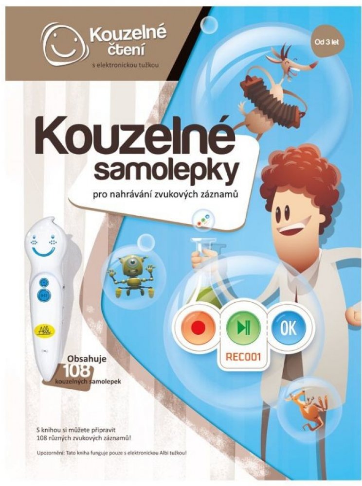 Kouzelné samolepky ze série Kouzelné čtení jsou unikátní samolepky s mezinárodní patentovanou technologií. Pomocí nahrávací funkce v elektronické Albi tužce mohou rodiče svým dětem sami nahrát příběhy, vzkazy nebo třeba zvuky. S použitím tužky si je děti mohou kdykoli poslechnout. Kouzelné samolepky jsou skvělá pomůcka, která pomáhá rozvíjet vztahy mezi rodiči a jejich dětmi.