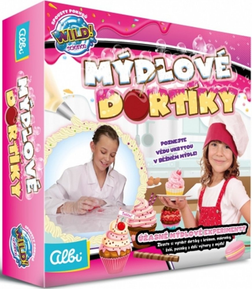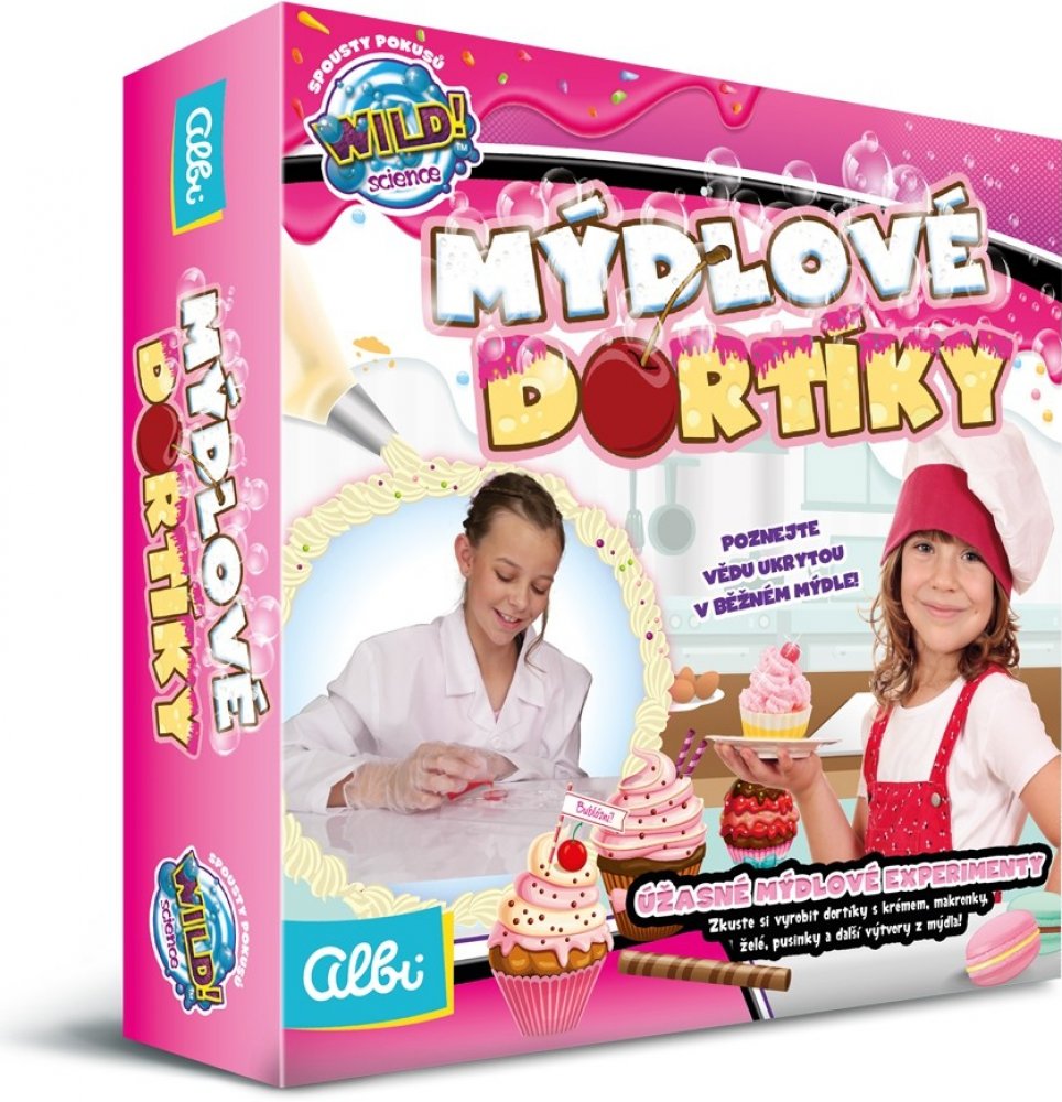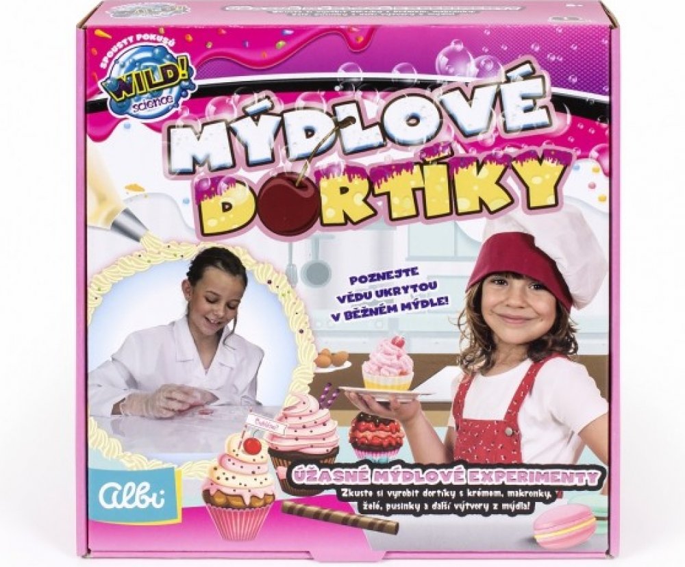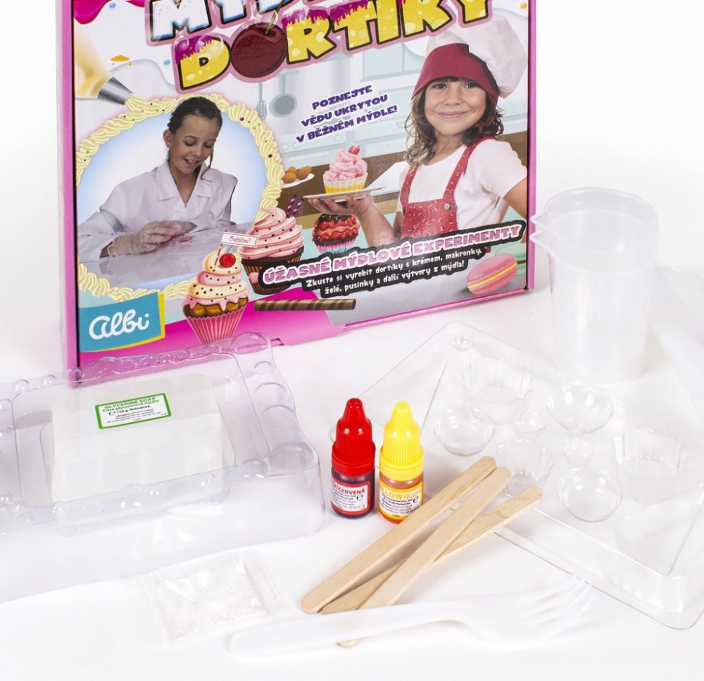 Bohatá sada pro malé chemičky, nebo kuchařky. Cílem tohoto vědeckého bádání je vytvoření ze speciálního mýdla různé dortíky, makaronky nebo pěnové krémy.