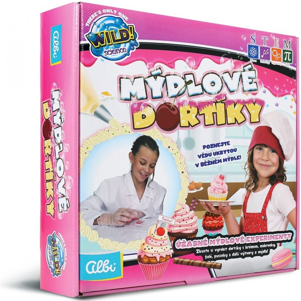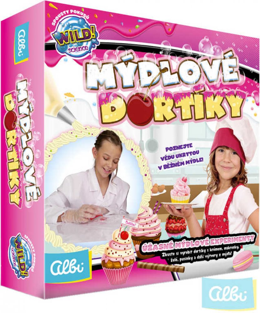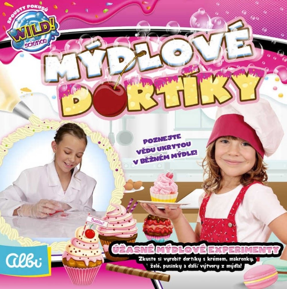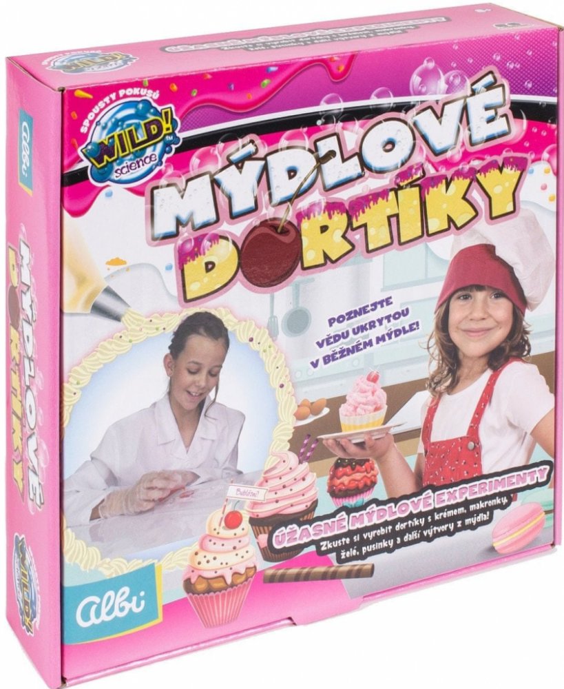 Bohatá sada pro malé chemičky, nebo kuchařky. Cílem tohoto vědeckého bádání je vytvoření ze speciálního mýdla různé dortíky, makaronky nebo pěnové krémy.