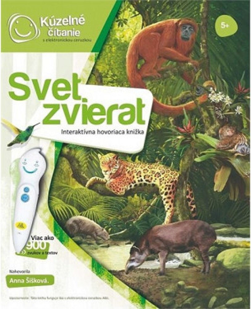 Ponorte sa do sveta zvierat! Zoznámte sa so zvieratami zo všetkých kútov sveta a zistite aké zvuky vydávajú, čím sa živia alebo čím sú jedinečné. Kniha Svet zvierat vás tematicky prevedie ôsmymi rôznymi prostrediami z našej planéty ako je les, savana, púšť, more a ďalšie. Na každej strane sa dozviete, aké zvieratá v danom prostredí žijú, ako sa volajú, aké zvuky vydávajú a čím sú zaujímavé. Svoje znalosti si potom môžete overiť pomocou zábavných kvízov, ktoré sú vždy rozdelené do troch kategórií: nájdi zviera podľa názvu, nájdi zviera podľa zvuku, nájdi zviera podľa zaujímavosti. Knižka obsahuje viac ako 900 zvukov a textov. Knižku nahovorila Anna Šišková Ilustrácie: © Martina Lásková, 2014 Text: © Stanislav Němec, 2014 Rozmery knižky: 22,9 cm x 26,9 cm ISBN: 978-80-89773-01-5 AUDIO SÚBOR Audio súbor (aj podrobný postup ako pridať súbor do ceruzky) nájdete na www.kuzelnecitanie.sk.