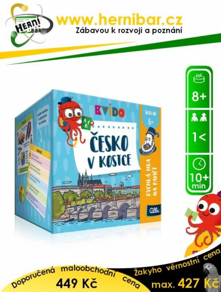 všeobecný přehled o naší zemi a rovněž celé rodině procvičí paměť, pohotovost, smyslové vnímání i veškeré mozkové buňky, díky čemuž dokonale zabaví vaši ratolest