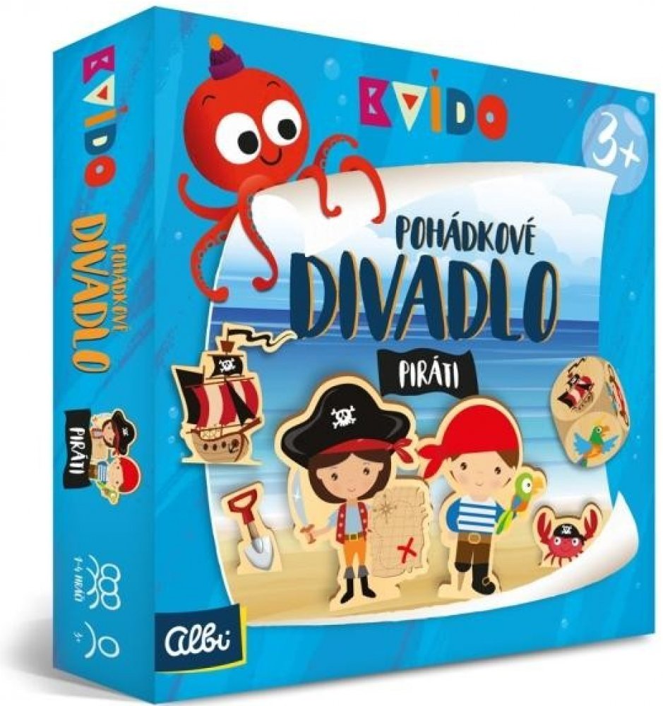 Jak se Pohádkové divadlo od Kvída hraje? Hráči postaví divadlo s kulisami a několika doplňujícími rekvizitami. Nejmladší hráč hodí třemi kostkami a určí, které postavy budou hrát v jeho příběhu a 4. akční kostka představuje, jaká akce se v příběhu odehraje, např. pirát schová poklad nebo princ běží k drakovi, aby s ním bojoval apod. Dítě začíná vyprávět příběh dle vlastní fantazie. Řekne první dvě věty a předá kostky dalšímu hráči, který pokračuje v příběhu a hodem kostkami přidá další postavy. Hra končí po dohodě hráčů, až je příběh dokončený.