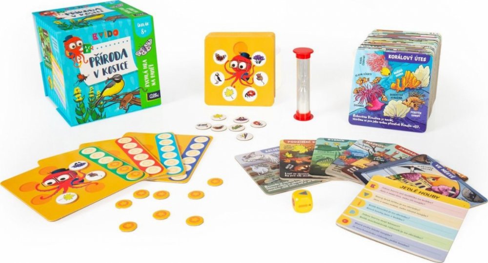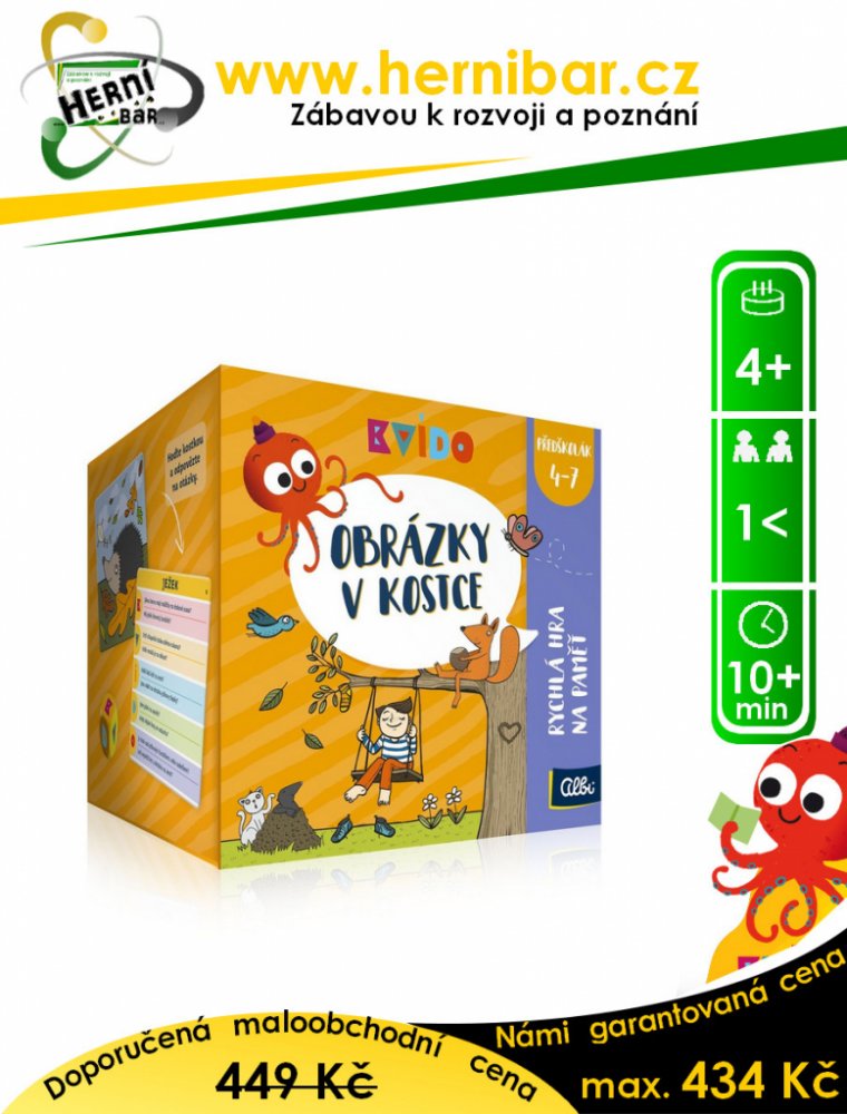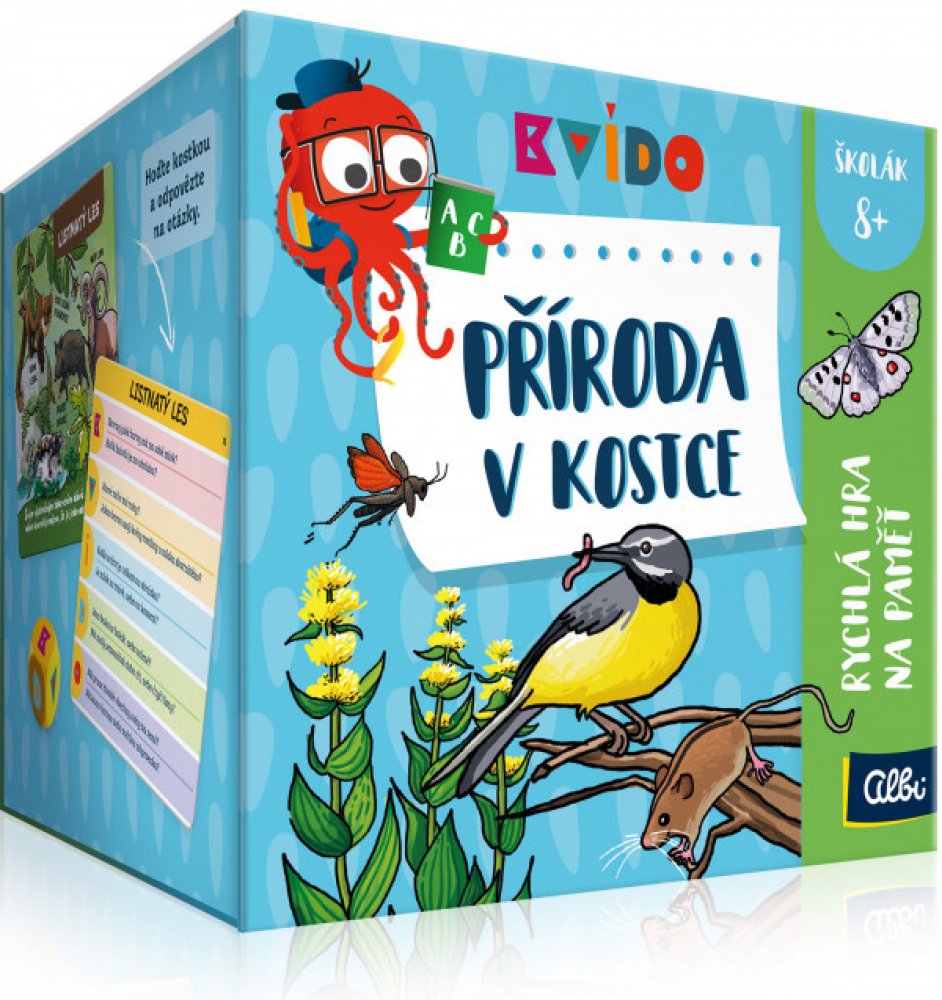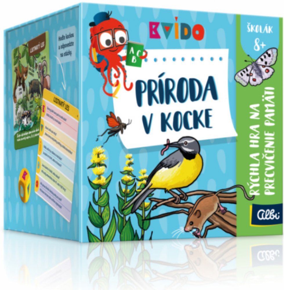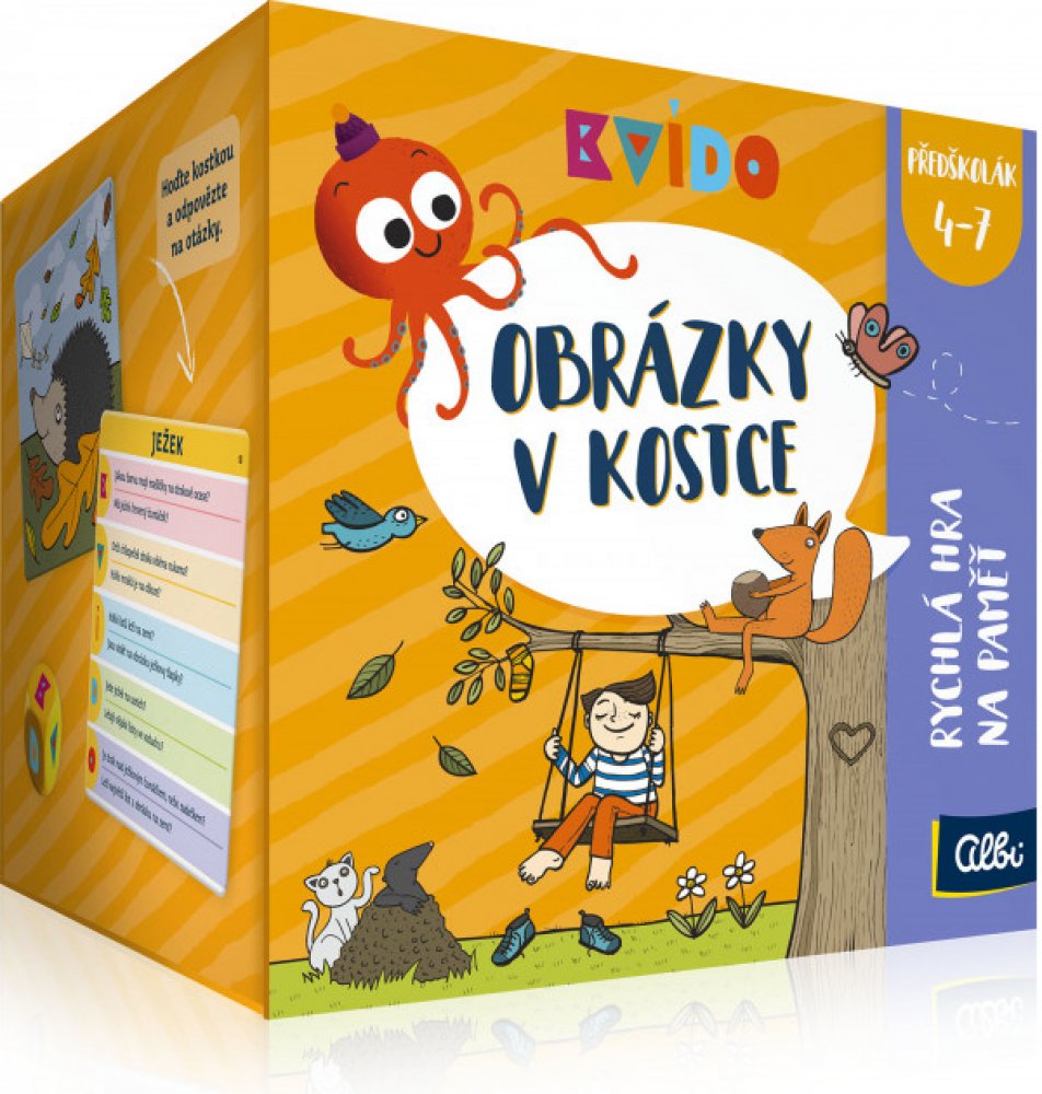 Rychlá obrázková hra na paměť a vědomosti. Hry Kvído V kostce navazují na oblíbené hry V kostce, ale tentokrát jsou propojeny s oblíbenou dětskou postavou chobotničky Kvída.