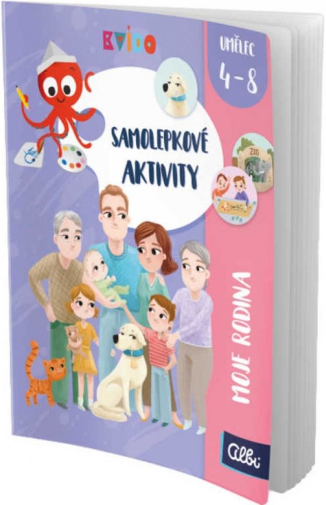 Samolepkové aktivity obsahují 24 stran s pestrými úkoly a aktivitami na doplňování. Jsou určeny pro děti od 3 let a obsahují 138 samolepek a vystřihovánek s motivy rodiny či zvířátek. Samolepkové aktivity rozvíjí jemnou motoriku, zrakové vnímání, koncentraci a logické uvažování.