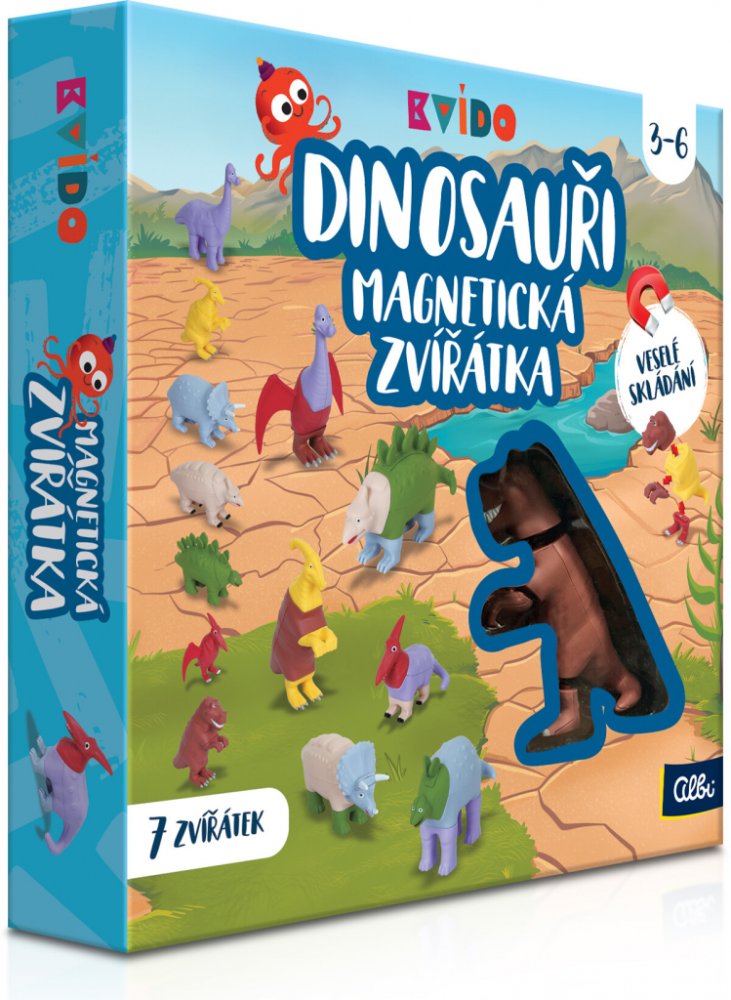 Interaktivní skládací magnetická hra přináší dětem svět prehistorických dinosaurů. Každé ze 7 zvířátek se dá rozložit na 4 části a libovolně kombinovat s ostatními. Díky magnetickým dílkům pevně drží pohromadě a umožňují tvorbu vlastních zvířat, kteří pak ožívají na 3D hrací desce. Hra podporuje jemnou motoriku, kreativitu, fantazijní a spontánní hru.