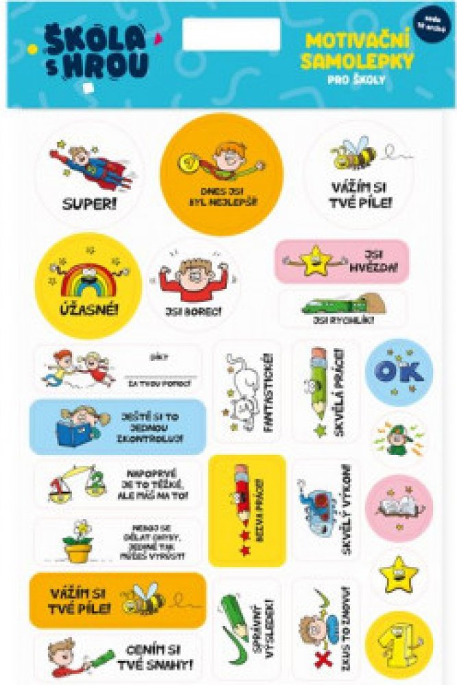 Originální motivační samolepky povzbuzují školáky k lepším výkonům. Balení obsahuje: 10 archů obrázkových samolepek (2×5 stránek stejných motivů).