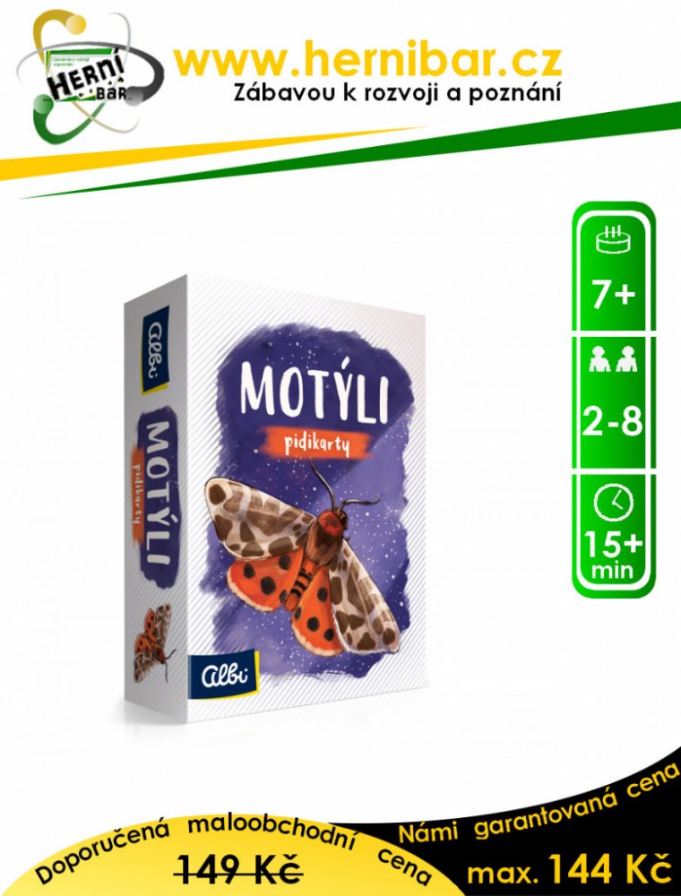 Albi paměťové Albi 2022 Motýli 7 let 2 - 8 15 min 2 8 pro rodinu kompetitivní snadné rychlé a svižné s občasnou interakcí vyvážené s minimem textu dlouhodobě hratelné v češtině