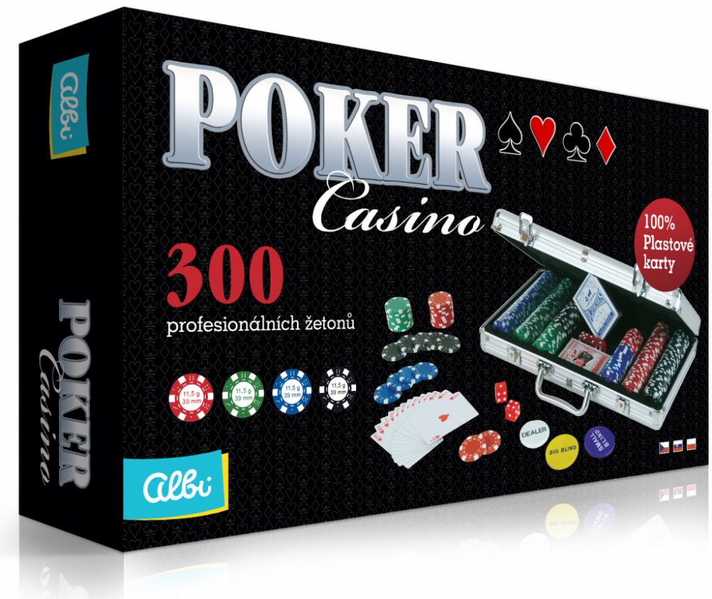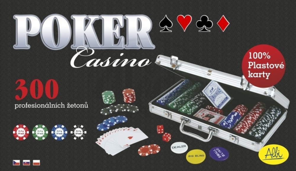 Klasický pokerový hliníkový kufřík ve stříbrné barvě, který obsahuje 300 kvalitních 11,5 gramových žetonů a 2 balíčky plastových karet, které vám zajisté nabídnou větší požitek ze hry a které jsou mnohem trvanlivější. Kufřík je vhodný pro pokerovou variantu Texas Hold`em.