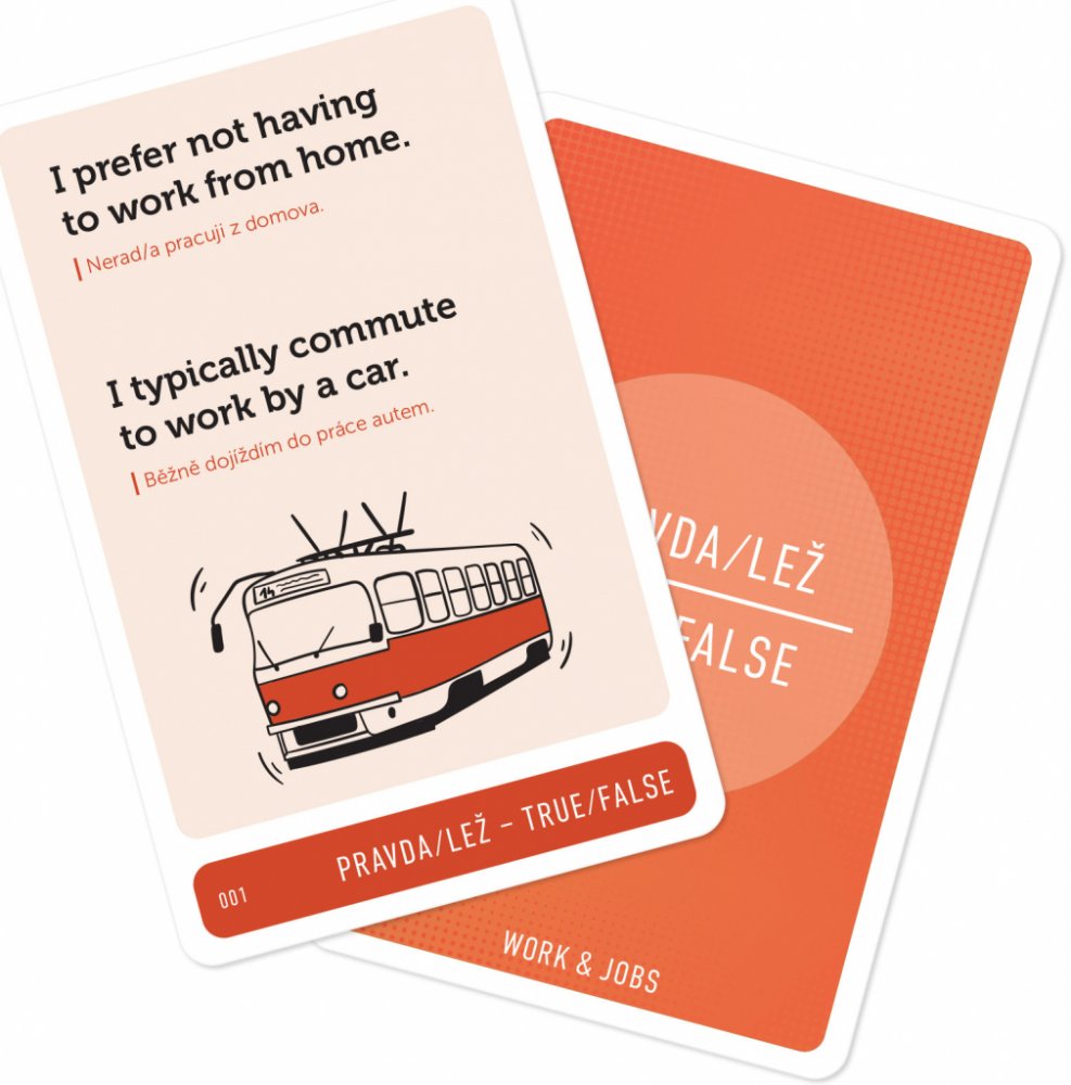 Karty jsou určeny pro každého, kdo si chce zlepšit angličtinu. Čas odhodit zábrany a začít mluvit! Popovídejte si o svých zálibách, práci, rodině, jídle nebo cestování.