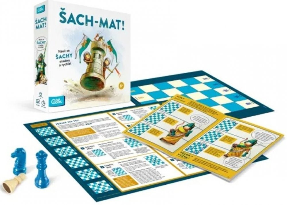 Výuková sada Šach Mat! vás pomocí jednoduchých miniher naučí, jak se která figurka na šachovnici pohybuje a díky tomu se rychle naučíte, jak plnohodnotně hrát šachy.