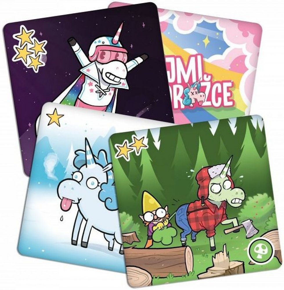 Sejmi jednorožce je bláznivě zpracovaná karetní párty hra, ve které se snažíte ulovit co nejvíc záludných jednorožců - a zároveň naházet ostatním lovcům co nejvíc klacků pod nohy. Hráči se pokouší za pomoci pastí ulovit takové jednorožce , kteří jim pomohou k co největšímu bodovému zisku , aby uspěli, musí ale nastražit léčky na ostatní protihráče. Nebo použít staré dobré blafování. Hra obsahu...