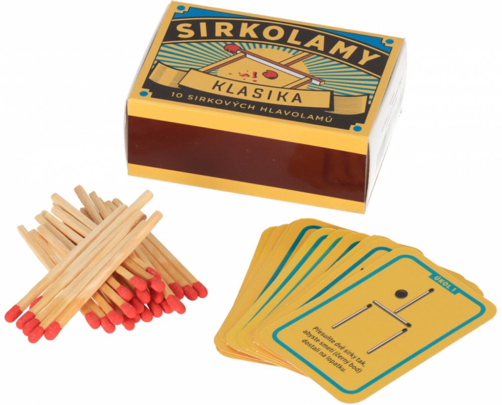 Hlavolam obsahuje skutečné sirky, proto jej děti smí hrát pouze pod dozorem rodičů nebo osob starších 18-ti let. Rozměr: krabička 8 x 5,5 x 3,5 cm