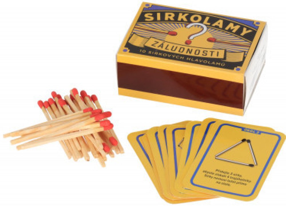 Vezměte si kartu úkolu, rozestavte sirky a splňte zadání. Řešení najdete na druhé straně karty úkolu. V zápalkové krabičce najdete 10 zadání hlavolamů, které Vám nedají spát.