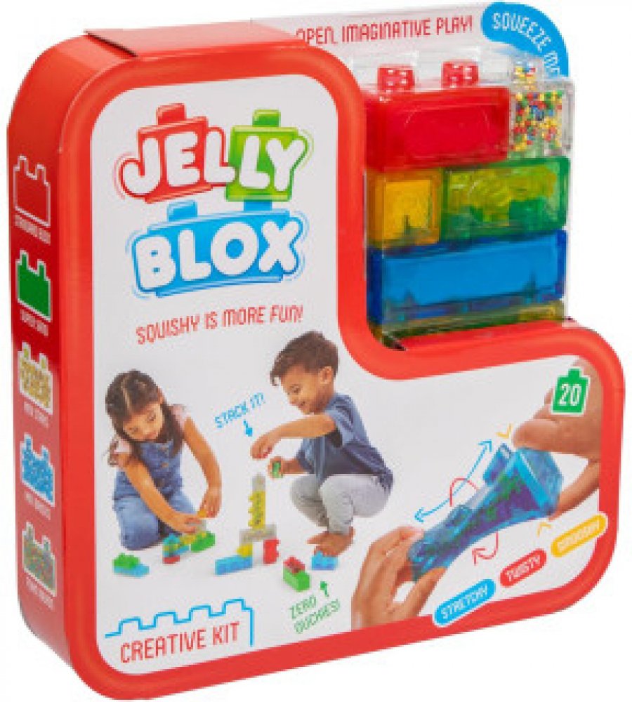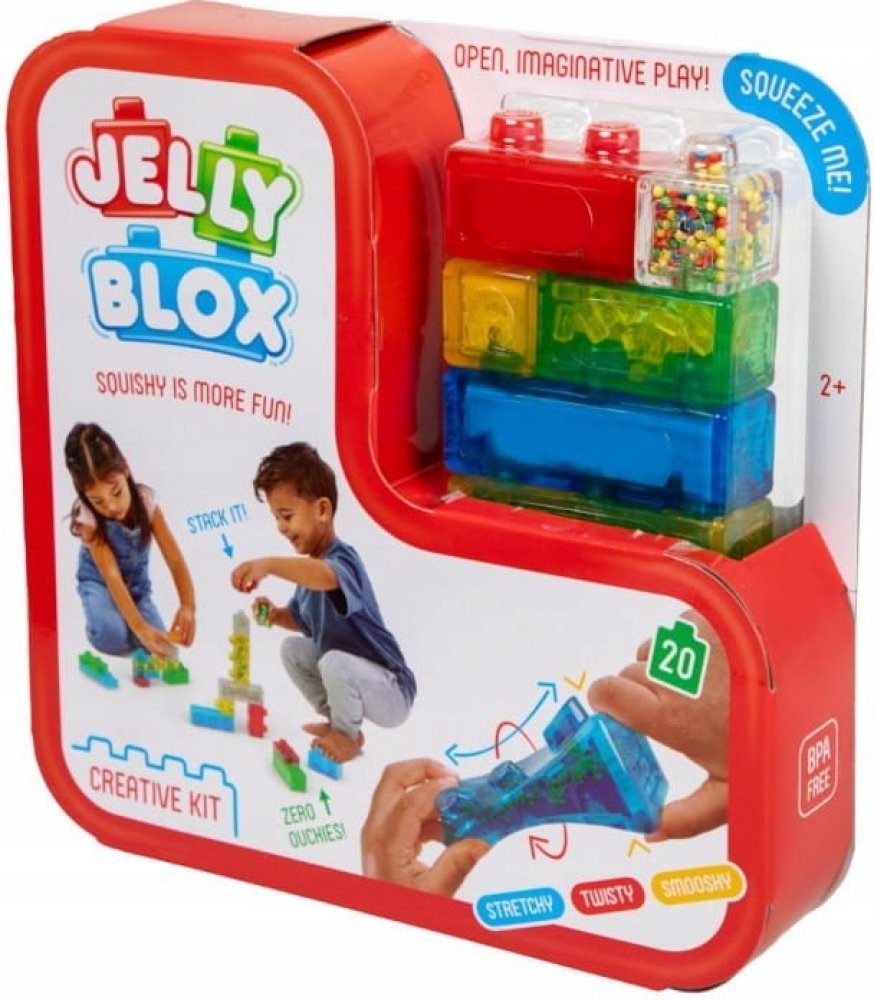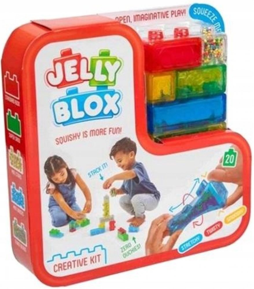 Stavební kostky Jelly Blox nabízejí kreativní a smyslové hraní pro děti od 2 let a rozvíjejí fantazii díky měkkým a pružným materiálům. Podporujte kreativitu s 20 všestrannými stavebními kostkami. Zapojte smysly s kostkami naplněnými pískem, korálky a hvězdami. Zajistěte bezpečnou hru s měkkými a pružnými materiály. Podporujte motorické dovednosti prostřednictvím praktického stavění. Podporujte ná...