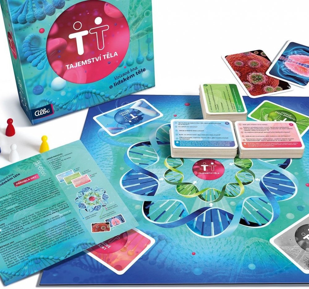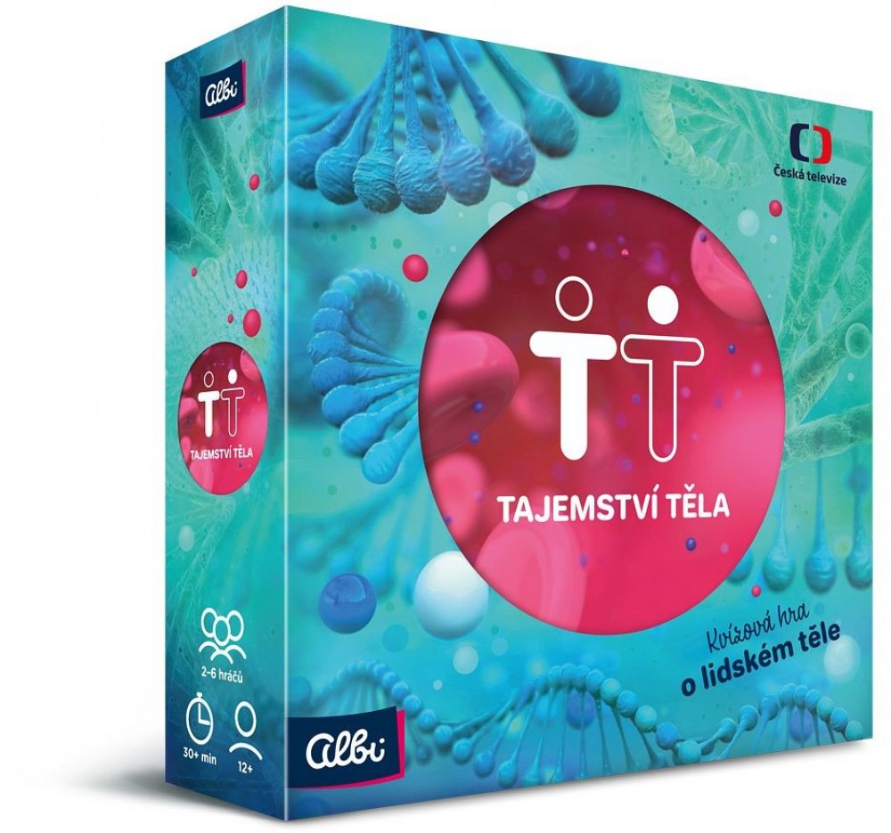 Podívejte se sami na sebe jinýma očima. Zkoumání lidského těla je nekonečná zábava. Víte, že lidské tělo vyprodukuje za půl hodiny tolik tepla, že by přivedlo k varu asi 4 litry vody? Že naše srdce přečerpá za den až 10 tisíc litrů krve? Že na úsměv potřebujeme 17 druhů svalů, kdežto na zamračení 43? Lidské tělo je tak fascinující stroj, že nám stále nabízí stovky záhad a zajímavostí. Desková hra Tajemství těla vám prostřednictvím téměř 900 otázek poodhalí některé z nich. U každé otázky ve hře najdete možnosti odpovědi. U finálových otázek budete mimo jiné i poznávat záludné obrázkové karty. Cílem hry je nasbírat celkem 6 karet s otázkami napříč obtížnostmi. Společenská hra Tajemství těla vznikla na motivy stejnojmenného populárního pořadu České televize.