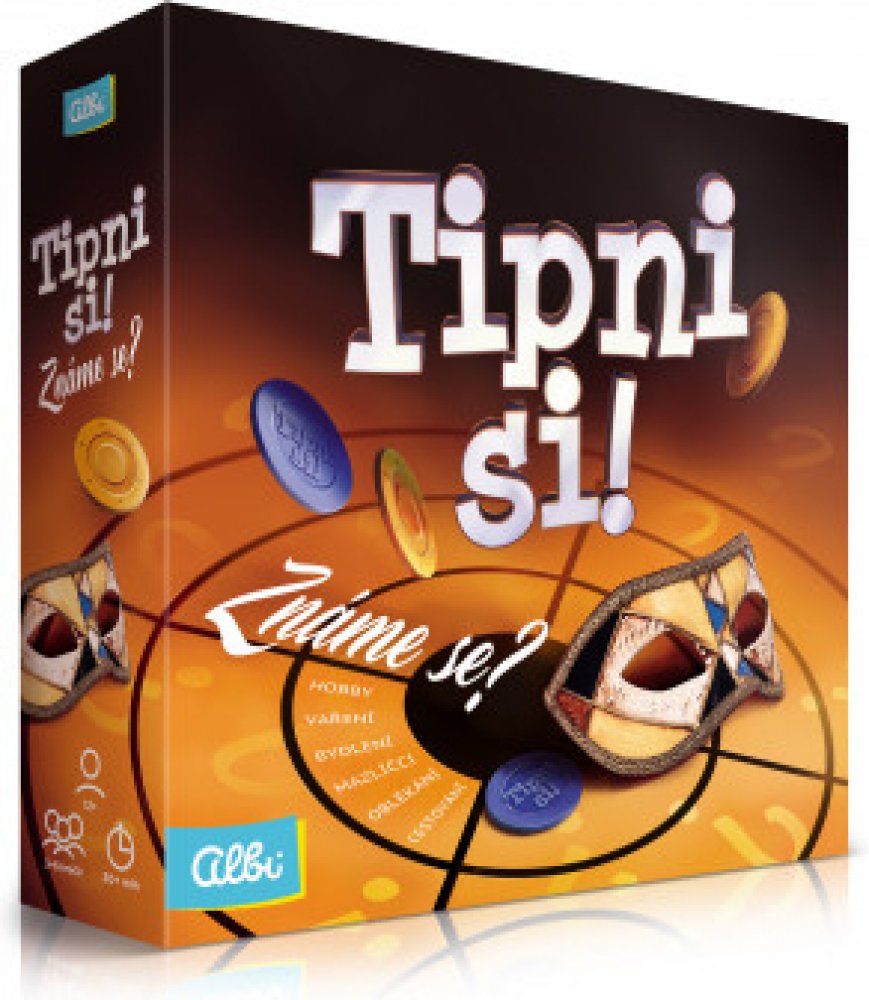 Víte, kolik vašich spoluhráčů už bylo někdy v Africe, kolik jich spí v noční košili a kolik z nich při luxování vysává i pavouky? I kdybyste to nevěděli, můžete si tipnout. V párty hře Tipni si! Známe se? se dozvíte o svých spoluhráčích první poslední – ačkoli nikdy si nemůžete být jisti, kdo danou odpověď zvolil. A pokud se nestydíte, můžete hrát otevřenou hru a vsadit si přímo na odpověď konkrétního hráče! Čeká na vás 900 tvrzení, rozdělených do 6 okruhů: Cestování, Vaření, Oblékání, Hobby, Domácnost a Mazlíčci. Takže se o svých spoluhráčích dozvíte skutečně hromadu nového – a třeba i překvapivého. Hra Tipni si! Známe se? obsahuje: 12 tipovačů a rozhodovačů, 300 karet s otázkami, 6 hráčských žetonů, 40 plastových mincí a pravidla. Počet hráčů: 3 – 6 Věková skupina: 12+ Doba hraní: 30 min