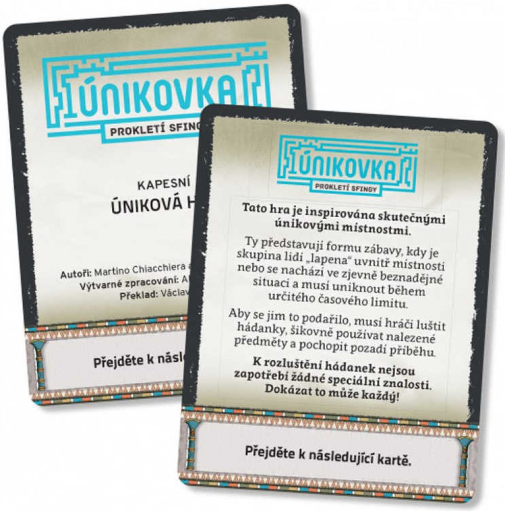 Únikovka je karetní variací na populární únikové hry, při nichž se skupina přátel nebo kolegů (lze hrát i v jednom hráči) nechá zamknout do místnosti ...