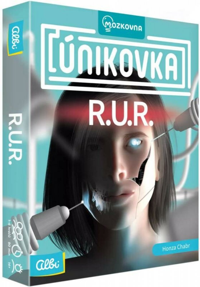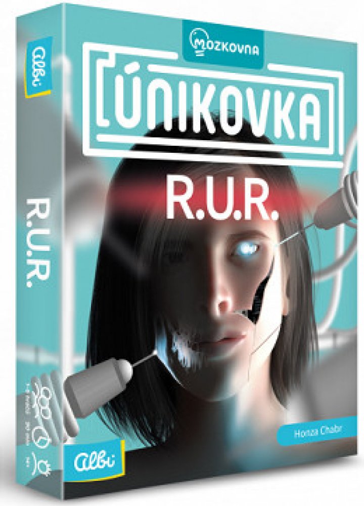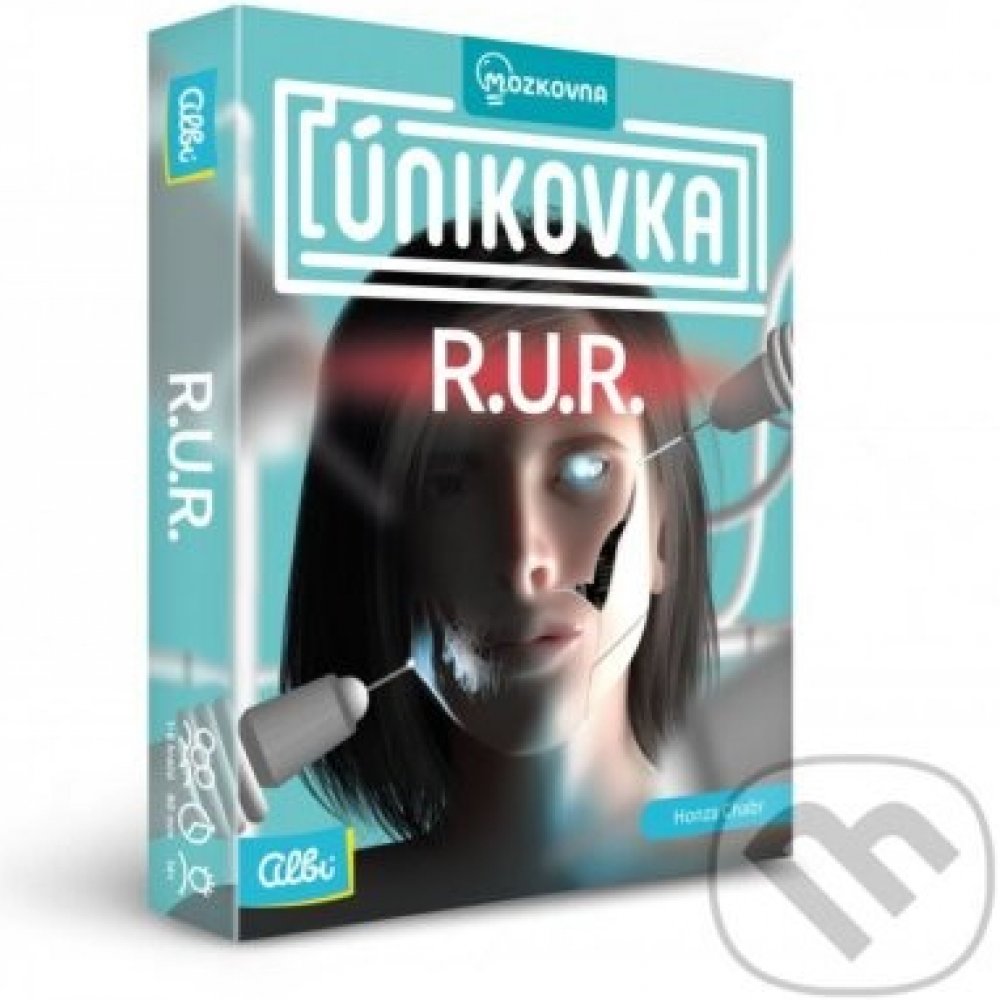 Hra Únikovka - R.U.R. obsahuje: 38 plastových karet a manuál.