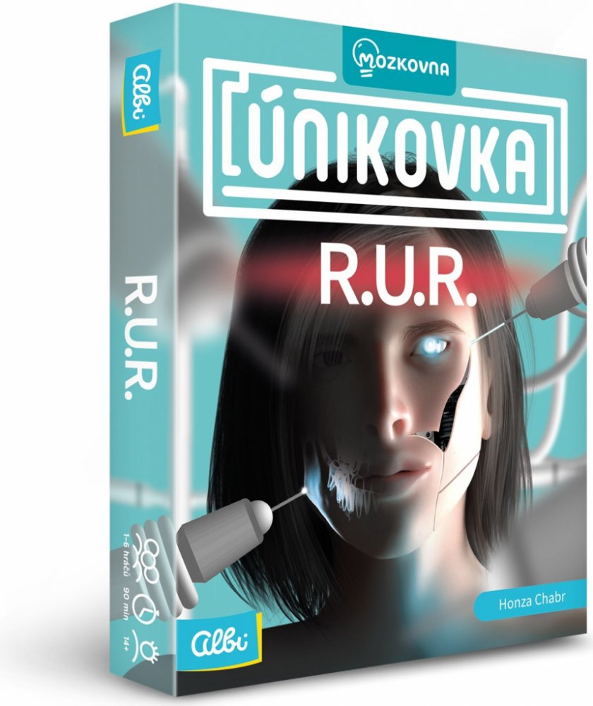 Hra Únikovka - R.U.R. obsahuje: 38 plastových karet a manuál.