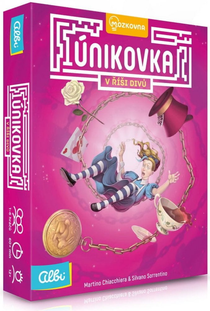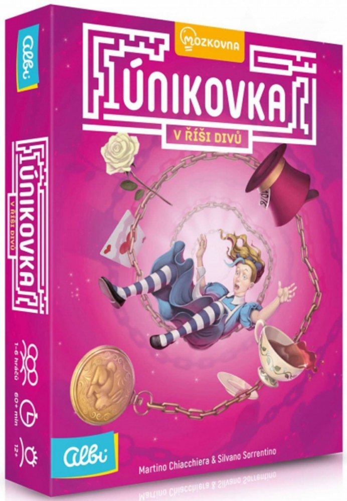 V Únikové hře se ocitáte po boku Alenky v úžasné a trochu šílené Říši divů. Podaří se vám najít řešení hádanek, lušťovek a rébusů, které si pro vás připravili obyvatelé této neuvěřitelné země? Únikovka V Říši divů je karetní variací na populární únikové hry, při nichž se skupina přátel zamkne do místnosti plné rébusů a snaží se z ní v časovém limitu uniknout pryč. Únikovka je plná nástrah, které musíte vyřešit, chcete-li uspět. Buď všichni vyhrajete, nebo společně selžete. Hráči společně procházejí balíčkem karet, čímž se jim odhalují nová pravidla a nové rébusy. Některé karty představují hlavolamy, jiné nápovědy a další předměty, které se budou později hodit. Hru si užijí rodiny s dětmi a lidé, co mají rádi únikové místnosti, rébusy a hádanky. Únikovka je ideální na dlouhé cesty, lze ji hrát i v jednom hráči a procvičuje logické myšlení. Upozornění: Hry Únikovky můžete hrát plnohodnotně pouze jednou (při opakovaném hraní už budete znát řešení rébusů). Darujte ji po odehrání přátelům a porovnejte si své výsledky. Hra obsahuje: