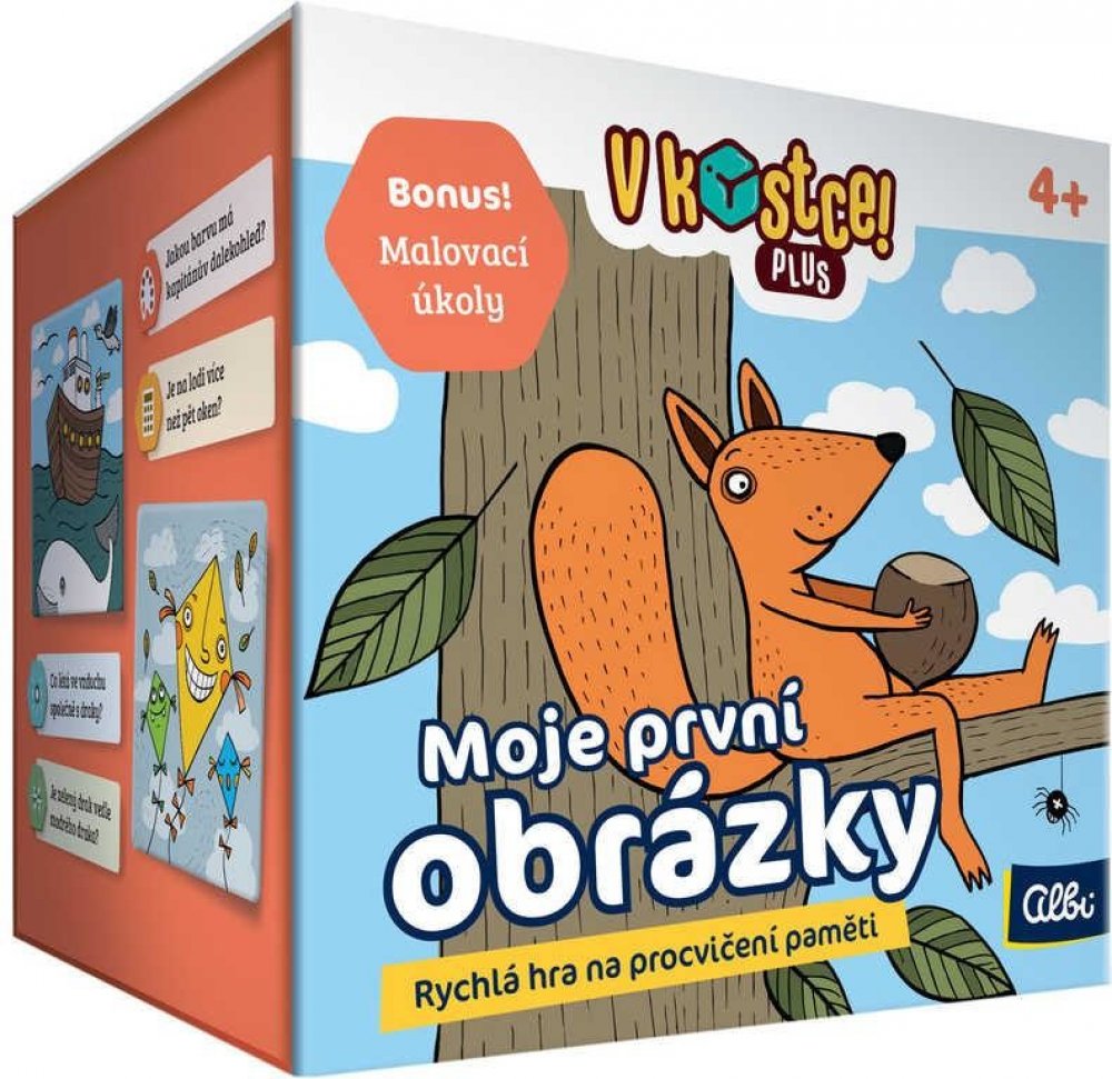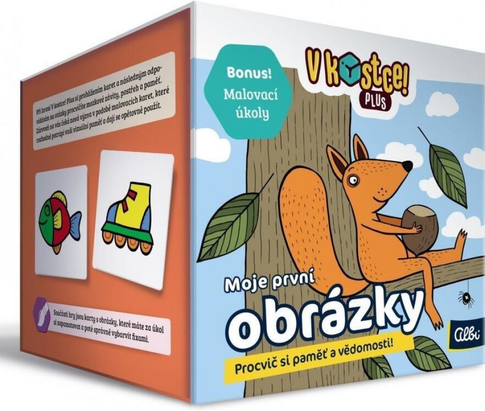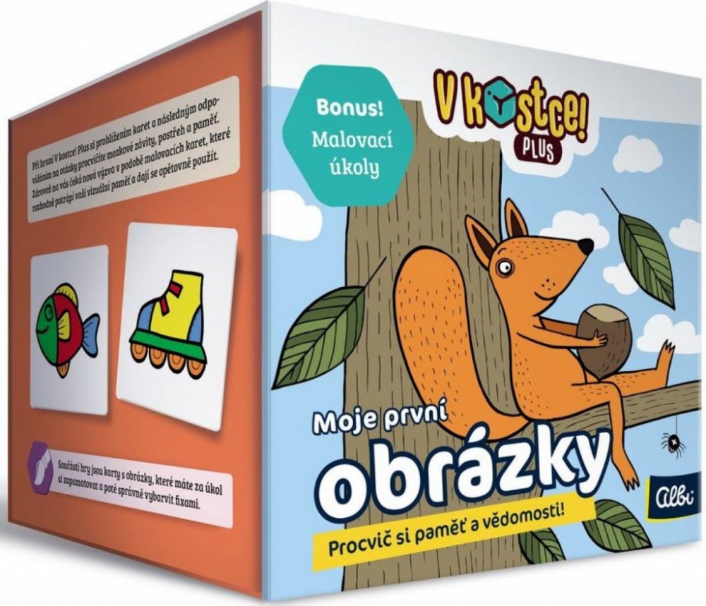 Hry, V kostce! Plus navazují na oblíbené hry V Kostce a posouvají populární mechanismy těchto her na zcela novou úroveň. S novými pravidly čeká na hráče ještě více odměn, než kdy dříve - třeba i v podobě bonusové malovací minihry!Děti se naučí zajímavá fakta o světě, České republice, nebo si procvičí písmenka. To vše nenásilnou formou - zapojí totiž především svoji paměť. Každá z krásně ilustrovaných kartiček představuje jedno téma. Hráči mají deset vteřin, aby si toho z ní zapamatovali co nejvíce, a zvládli odpovědět na sadu vylosovaných otázek.