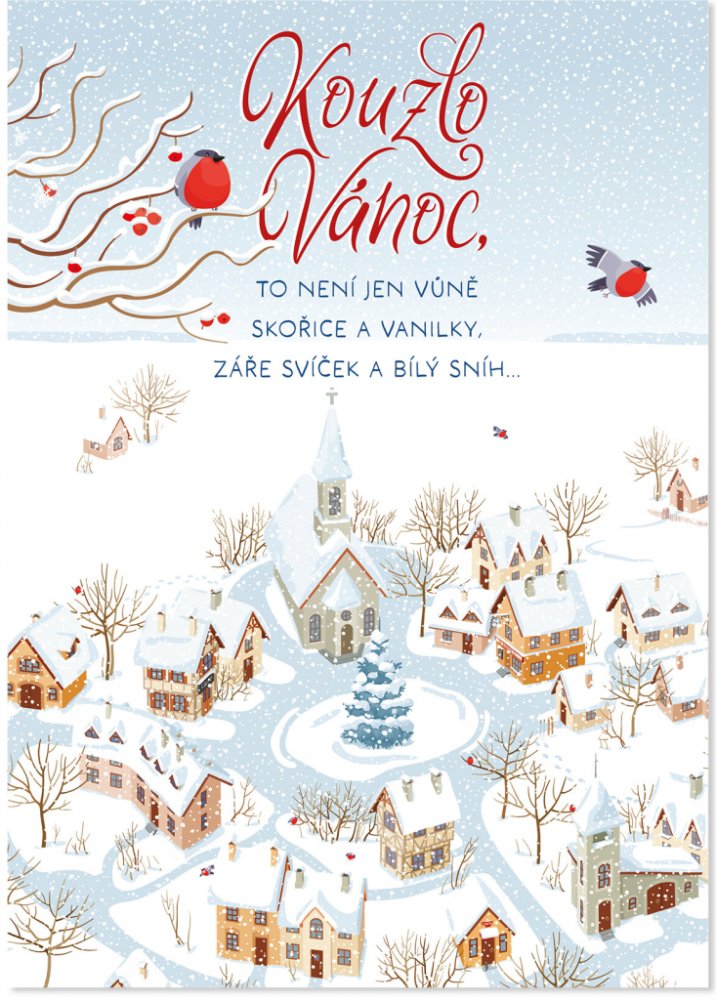 Vánoční hrací přání s malebnou zasněženou vesničkou okamžitě navodí sváteční atmosféru. Na přední straně přání je část textu, který zahřeje u srdce vaše blízké. Uvnitř se pak skrývá zbytek textu s prostorem navíc na vaše vlastní věnování či podpis. Po otevření přání začne hrát část písně od Davida Deyla - Svatý čas. Text přání: Kouzlo Vánoc, to není jen vůně skořice, vanilky, záře svíček a bílý sn...