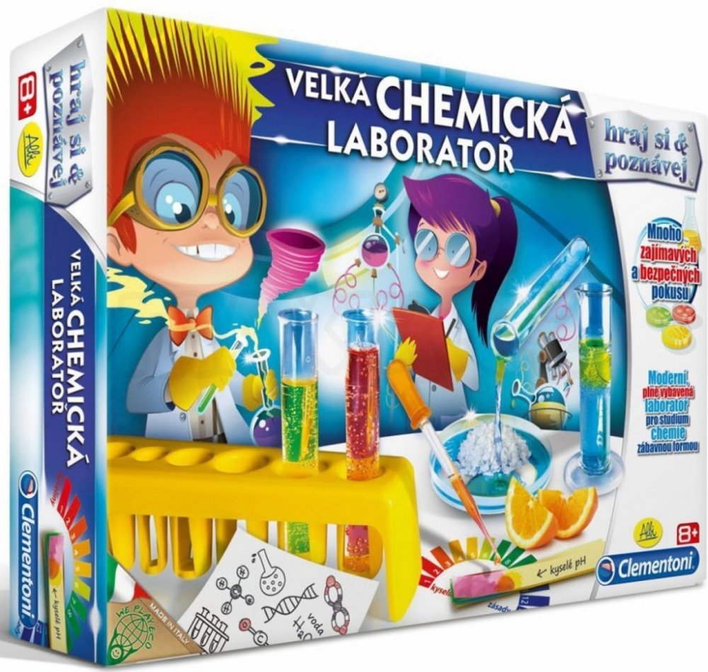 Experimentální sada Velká chemická laboratoř představuje moderní, plně vybavenou laboratoř pro studium chemie zábavnou formou. S touto experimentální sadou mohou děti vytvářet desítky zajímavých chemických pokusů. To vše díky množství užitečných pomůcek a naprosto bezpečně.