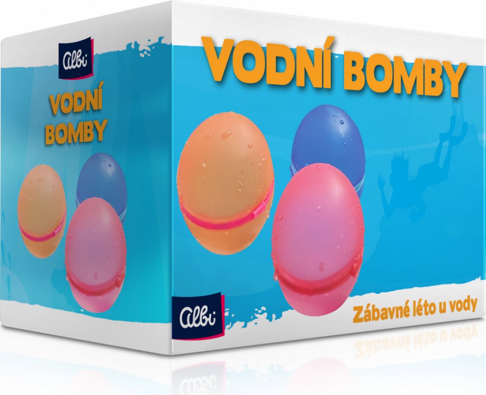 Sada Vodní bomby obsahuje: 6 barevných magnetických vodních bomb (1 modrou, 1 žlutou,1 oranžovou, 1 červenou, 1 bílou a 1 zelenou).