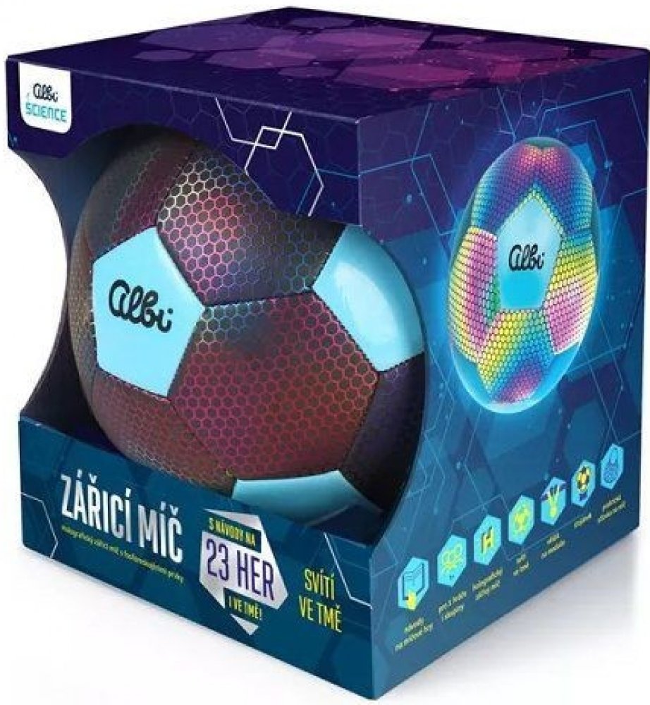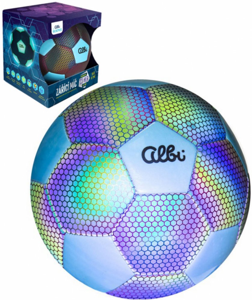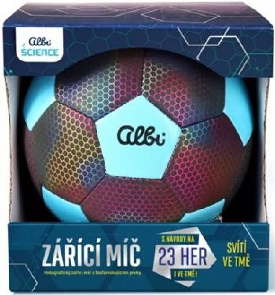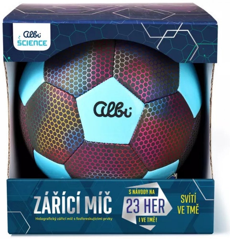 Patří míčové hry mezi oblíbenou aktivitu vašich dětí? Udělejte jim radost a pořiďte jim zářící míč od Albi. Zdobí ho modré pentagony, které mají fotoluminiscenční efekt. Necháte ho chvíli na sluníčku nebo pod žárovkou. Jakmile ho přenesete do tmy, duhově se rozzáří. Dokonce nepotřebuje ani žádné baterie. Míč je totiž vybavený fosforeskujícími prvky. Reflexní holografický efekt trvá přibližně 15 mi...