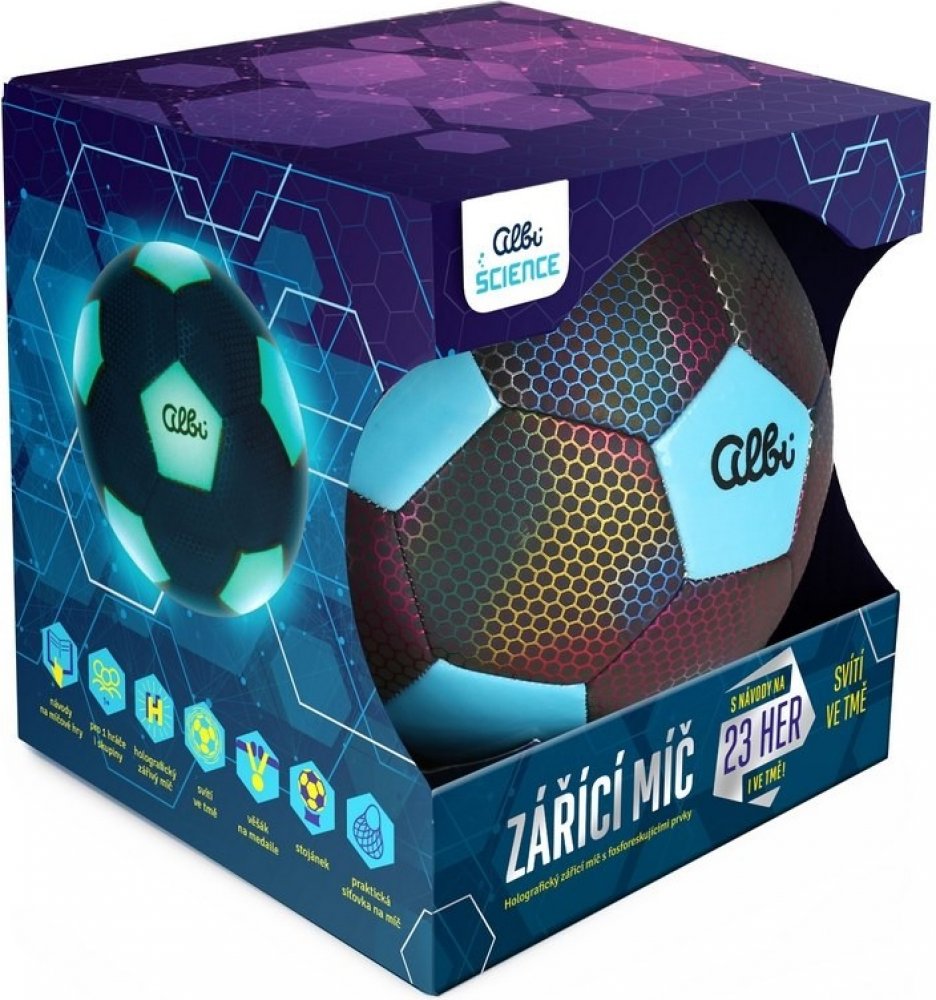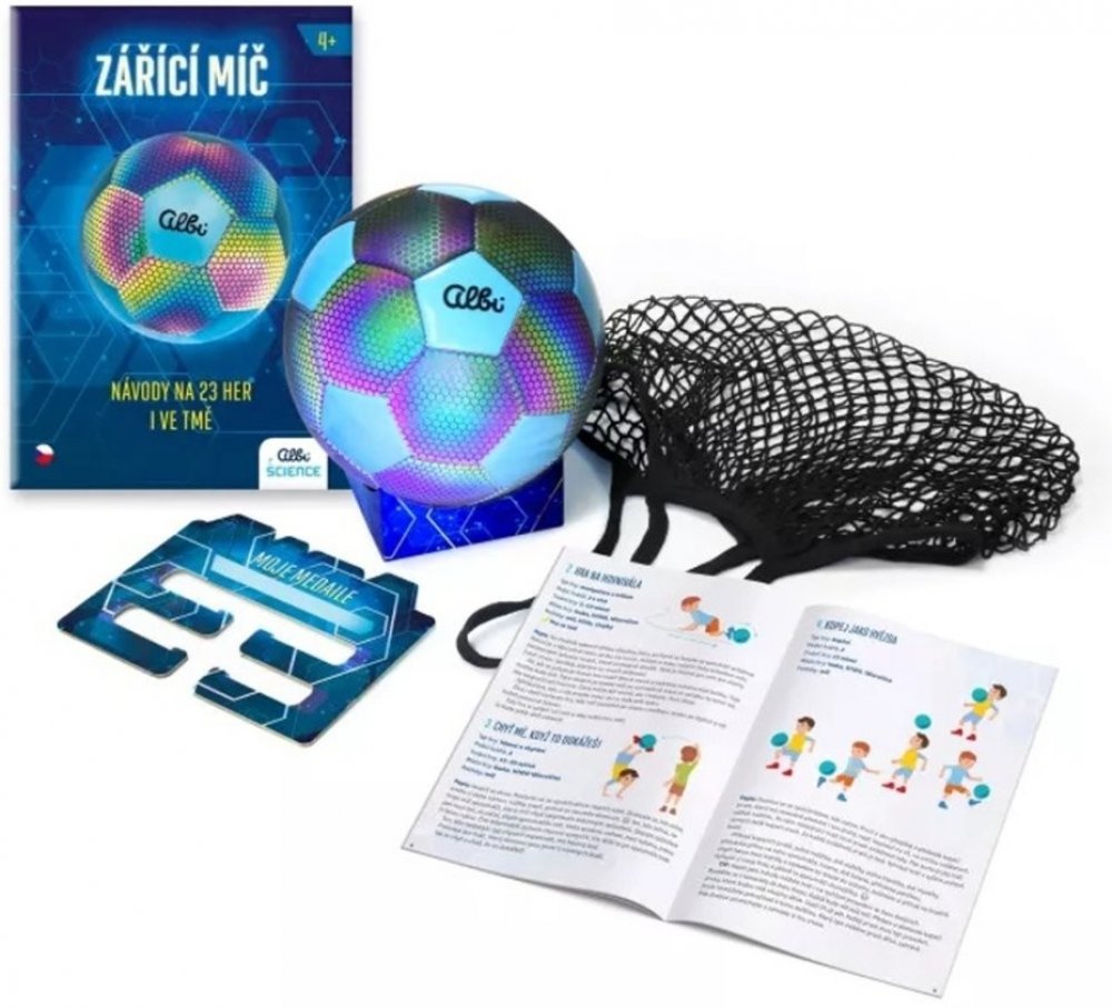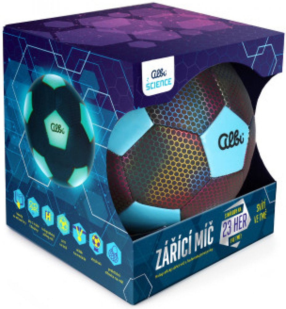 Patří míčové hry mezi oblíbenou aktivitu vašich dětí? Udělejte jim radost a pořiďte jim zářící míč od Albi. Zdobí ho modré pentagony, které mají fotoluminiscenční efekt. Necháte ho chvíli na sluníčku nebo pod žárovkou. Jakmile ho přenesete do tmy, duhově se rozzáří. Dokonce nepotřebuje ani žádné baterie. Míč je totiž vybavený fosforeskujícími prvky. Reflexní holografický efekt trvá přibližně 15 mi...