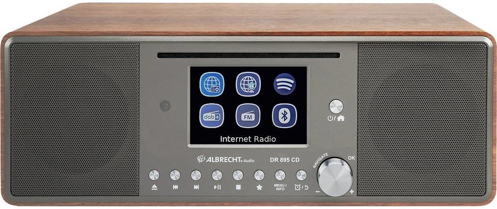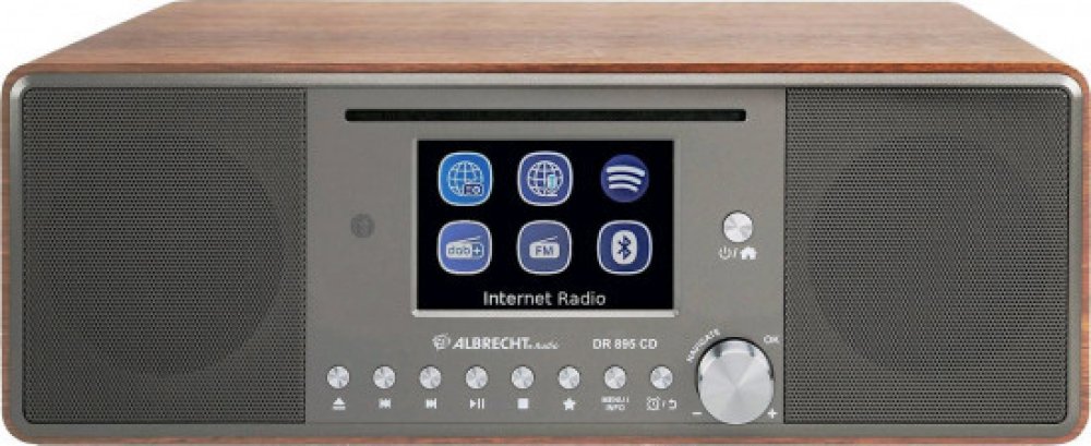 The hybrid radio DR 895 CD with integrated CD player has a noble wooden housing. It receives both internet, digital and FM radio stations, streams music from mobile devices such as smartphones or tablets. Spotify Connect is already integrated for even more music enjoyment. The all-rounder also has a CD player and a USB port for MP3 formats. In addition, podcasts can be saved as favorites and accessed via the speed dial. On the large 4" LCD color display radio station, song title and artist can be read wonderfully.