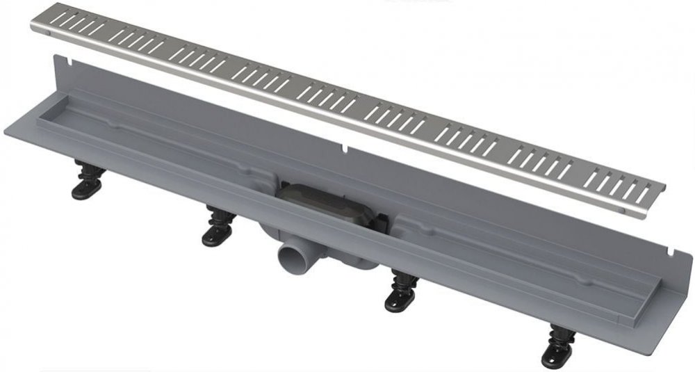 Sprchový odtokový žlab APZ30-650M značky Alca s délkou 650 mm slouží pro snadné odvodnění sprch v úrovni podlahy a osazení přímo ke stěně. Sprchový žlab má kombinovanou zápachovou uzávěru, která zaručuje ochranu proti zápachu z kanalizace i po vyschnutí vody v sifonu. Žlab je vyroben z polypropylenu, který je odolný proti mechanickému, chemickému i tepelnému poškození. Má navíc snadno čistitelný sifon až po odpadní trubku a samolepicí pásku pro kvalitní hydroizolaci. Stavební výška je od 62 mm a disponuje výškově nastavitelnými nohami 0–35 mm umožňující rychlou a komfortní instalaci včetně přesného nastavení roviny.