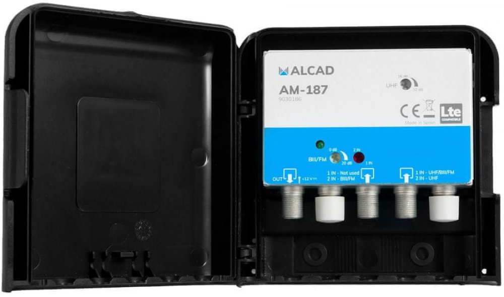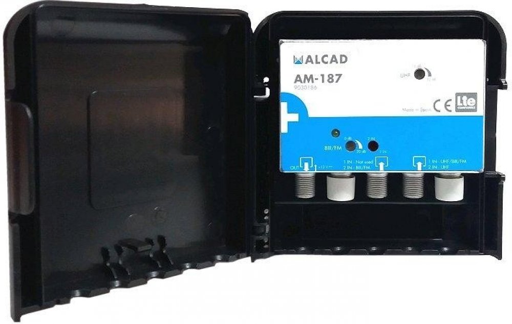 Nová řada zesilovačů AM jsou 1, 2, 3 a 4 vstupé širokopásmové domovní zesilovače vhodné i do venkovního prostředí. Jednotlivé vstupy mají samostatnou regulaci výstupní úrovně. Napájení zesilovače +12V je realizováno dálkově po koaxiálním kabelu přes výstup. Zesilovače vyráběné SMT technologií jsou umístěny v Zamac odlitku, který je proti povětrnostním podmínkám chráněn novým odolnějším plastovým krytem. Vstupy a výstupy jsou na F-konektory. Plastový kryt zesilovače je přizpůsoben jak k montáži na stožár (pomocí přiloženého třmenu) tak i na stěnu. U vybraných vstupů je relizováno přes vypínač napájení předzesilovačů +12V/50 mA. U nové řady je vylepšeno elektrické a mechanické propojení mezi plošným spojem a Zamac odlitkem které vede k větší odolnosti proti rozkmitání zesilovače. Zesilovač AM-187 má integrovaný filtr 5G.