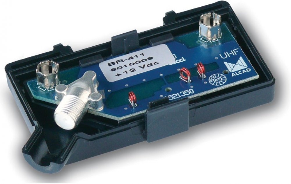Zesilovač Alcad BR-411 / 12V Předzesilovač BR-411 je určen pro antény ALCAD typu BU pro napájení +12V. • Instalace předzesilovače se provádí jednoduchou výměnou víčka krabičky se symetrizačním členem za víčko se zesilovačem. • Koaxiální kabel se připojuje pomocí F-konektoru. Technické parametry frekvenční rozsah 470-862 MHz zisk 14 dB šumové číslo 1.4 dB maximální výstupní úroveň 100 dBµV vstupn...