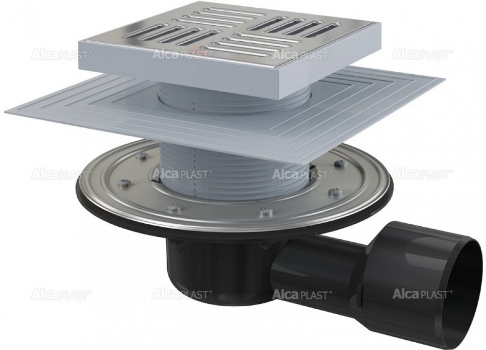 Použití. Pro bezbariérový přístup. Pro odvodnění v úrovni podlahy. Pro venkovní prostory, kde je možný pokles teploty pod bod mrazu – suchá zápachová uzávěra. Pro vnitřní prostory, kde se předpokládá časté využívání spojené s pravidelným odtokem vody do vpusti (koupelny) – vodní zápachová uzávěra..Provedení. Boční napojení na odpad O75/50 mm. Kompatibilita s dílci podlahových vpustí včetně vodní, suché a kombinované zápachové uzávěry SMART. Límec 2. úrovně izolace k napojení hydroizolační vrstvy pod dlažbou. Materiál: nerezová ocel AISI 304, DIN 1.4301. Materiál: polypropylen odolný proti mechanickému, chemickému a tepelnému poškození. Mechanicky čistitelný sifon až po odpadní trubku. Nerezová mřížka 143×143×5 mm. Nerezový límec pro pevné přichycení hydroizolační fólie nebo tkaniny hydroizolace stavby. Široký izolační límec pro napojení na hydroizolaci stavby. Volitelné použití suché nebo vodní zápachové uzávěry. Výškově upravitelné hrdlo 37–110 mm. Zápachové uzávěry brání pronikání zápachu z kanalizace..Součásti. Hrdlo vpusti 150×150 mm. Límec 2. úrovně izolace vnitřní O105 mm. Nerezová mřížka. Nerezová příruba + montážní set. Sada těsnění. Suchá zápachová uzávěra. Tělo vpusti boční O50/75 mm. Vodní zápachová uzávěra..