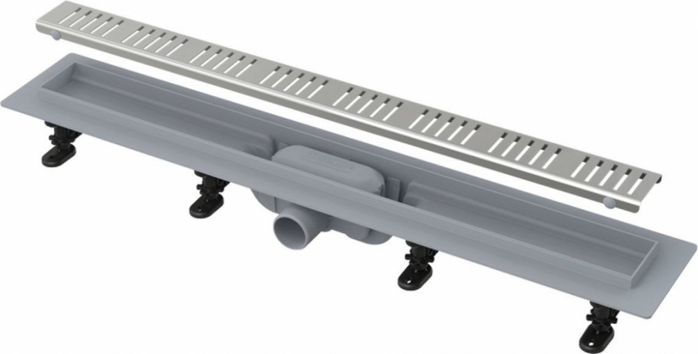 Použití• Pro bezbariérový přístup• Pro odvodnění sprch v úrovni podlahy• Pro osazení do prostoru nebo do blízkosti stěn• Pro použití uvnitř budovZákladní model z řady plastových podlahových žlabů je pro svou nízkou stavební výšku 62 mm vhodný zejména pro rekonstrukce a jiné stavby, kde je problém s nedostatkem místa v podlaze.Součástí každého žlabu je kompletní souprava žlabu s roštem a výškově nastavitelných noh s kotvicími prvky a hydroizolační páskou. V nabídce máme tři designová provedení roštů.Normy• ČSN EN 1253Technické parametry• Celková stavební výška 75 – 110 mm• Minimální tloušťka betonu 62 mm• Odolnost zápachové uzávěry proti tlaku 640 Pa• Průměr odpadního potrubí 40 mm• Průtok s vtokovou mřížkou 28 l/min• Třída zatížení K3 300 kg• Zápachová uzávěra kombinovaná s vodním sloupcem 29 mmVlastnosti• Bezpečné napojení na hydroizolaci stavby• Kombinovaná zápachová uzávěra (vlastní řešení chráněné užitným vzorem) zaručuje ochranu proti zápachu z kanalizace i po vyschnutí vody v sifonu• Materiál: polypropylen plněný mastkem• Mechanicky čistitelný sifon až po odpadní trubku• Podlahový žlab z vysoce odolného plastu, který odolá mrazu i chemii• Rošt je součástí balení• Samolepicí páska pro kvalitní hydroizolaci• Stavební výška od 62 mm• Výškově stavitelné plastové kotvící nohy 0-35 mm umožňující rychlou a komfortní instalaci včetně přesného nastavení roviny• Zvýšená odolnost proti chemikáliím